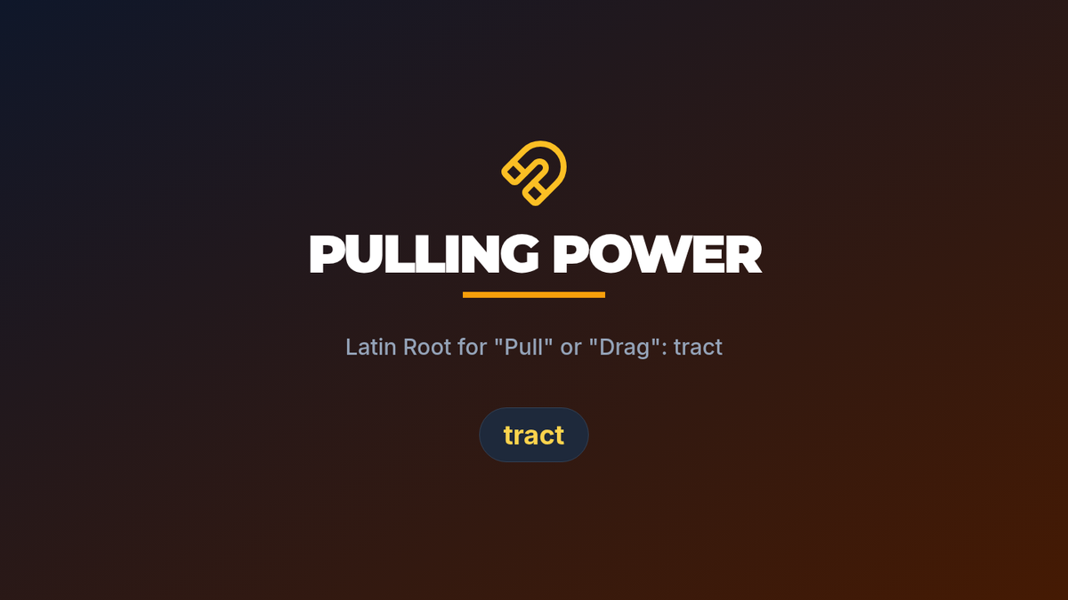 Introduces the Latin root 'tract' (to pull or drag), connecting it to words like subtract, attract, and extract.