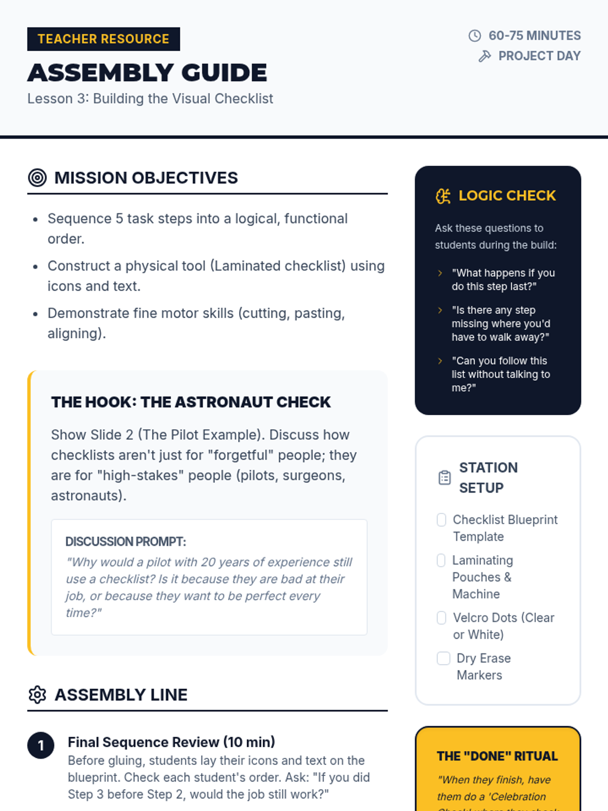 Students design and assemble their own physical visual checklists for a specific part of their day.