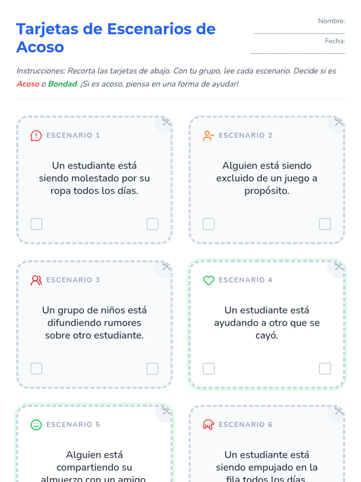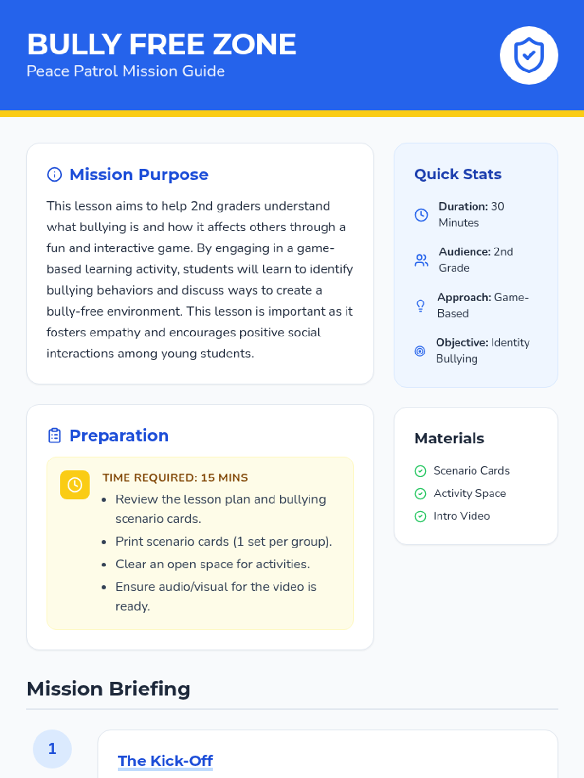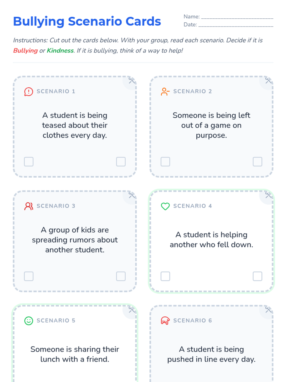 A game-based lesson for 2nd graders to identify bullying behaviors and brainstorm positive solutions to create a supportive classroom environment.