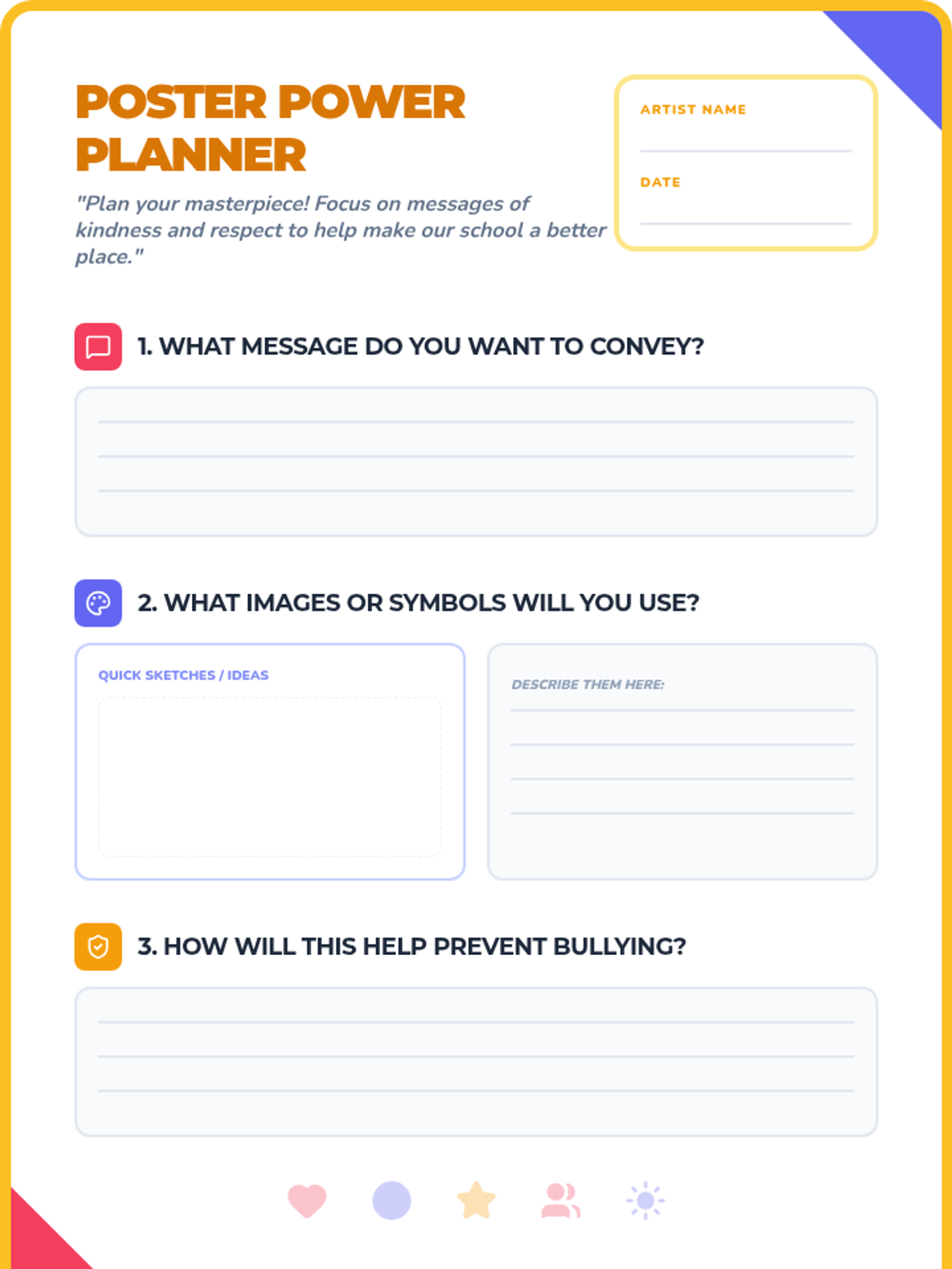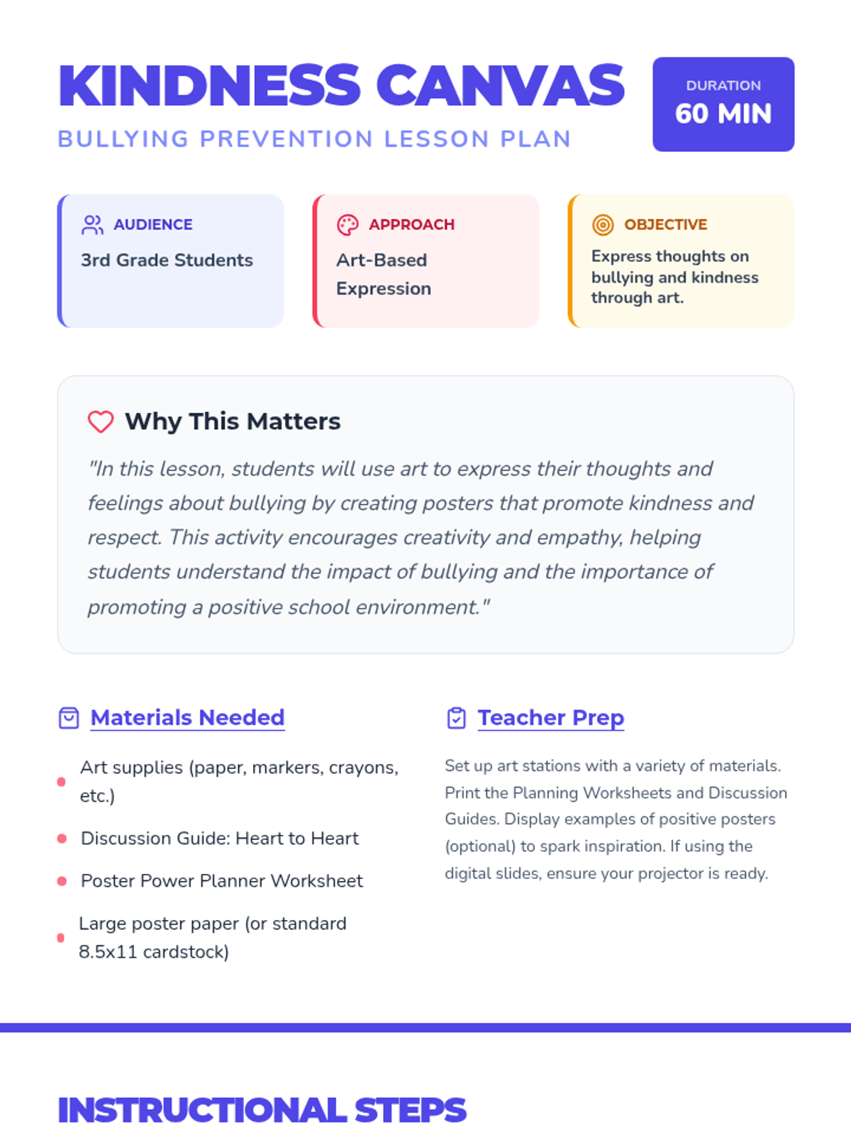 A creative art-based lesson for 3rd graders to explore bullying prevention, empathy, and community building through poster design.