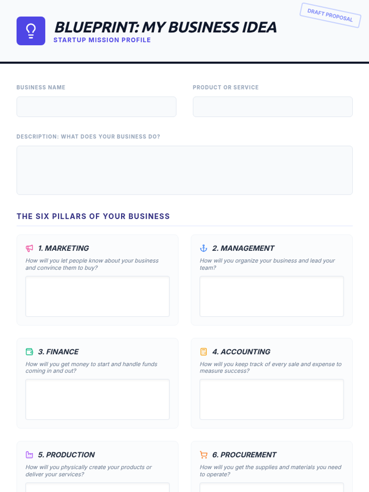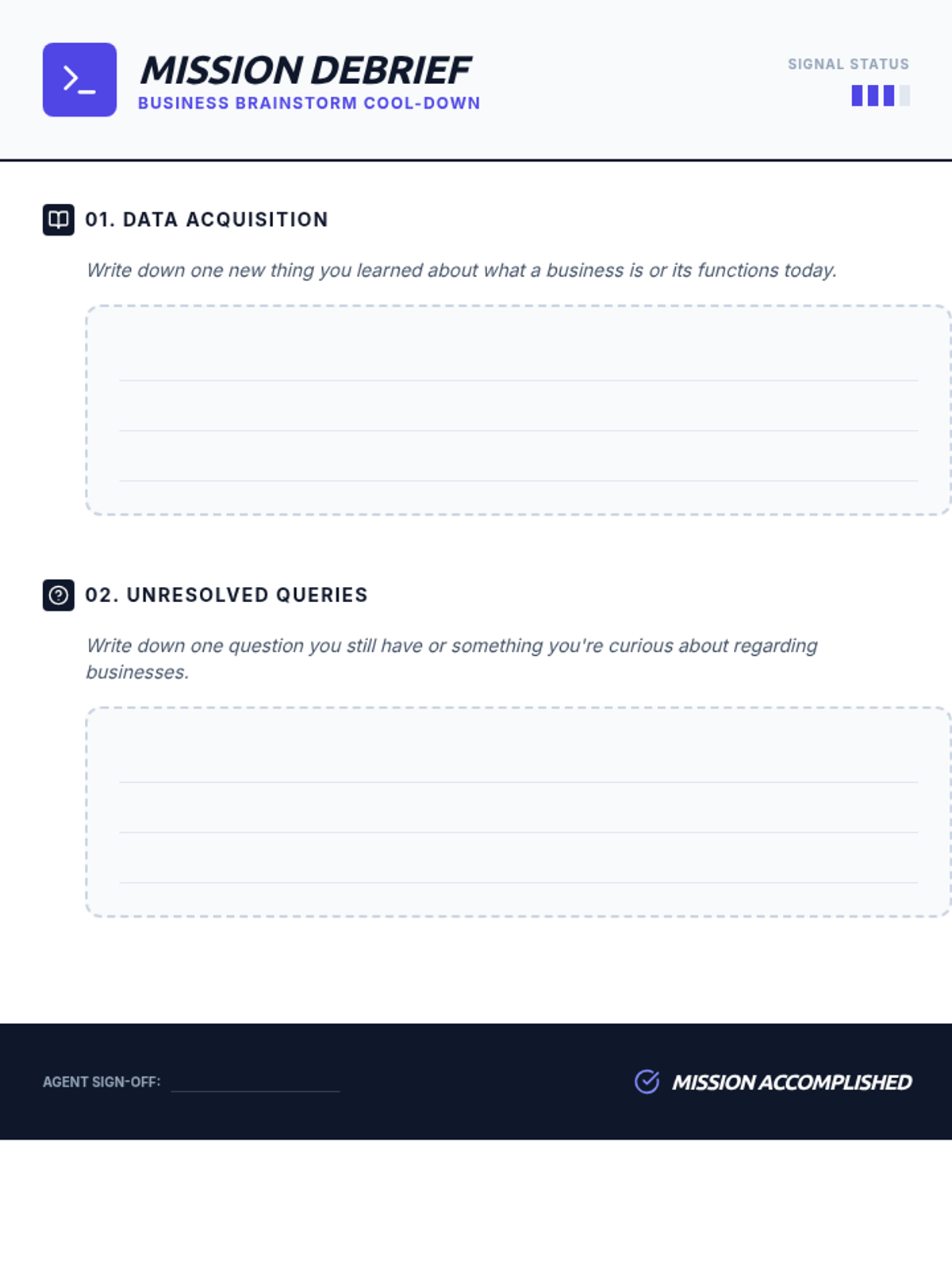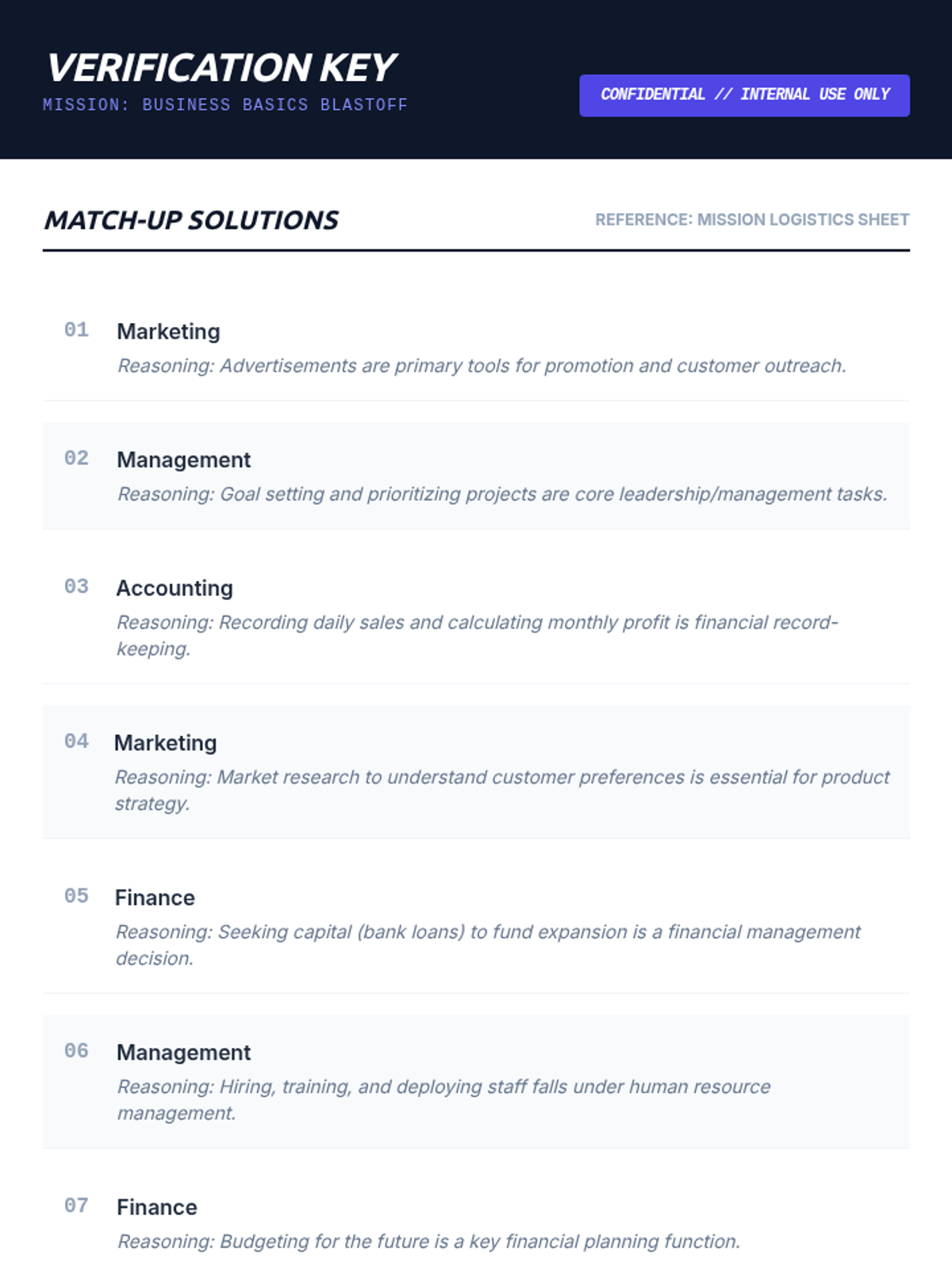 An introductory business lesson for 8th graders covering the definition of a business and its six core functions: Marketing, Management, Finance, Accounting, Production, and Procurement. Students engage through a themed presentation, a matching activity, and a creative brainstorming session.