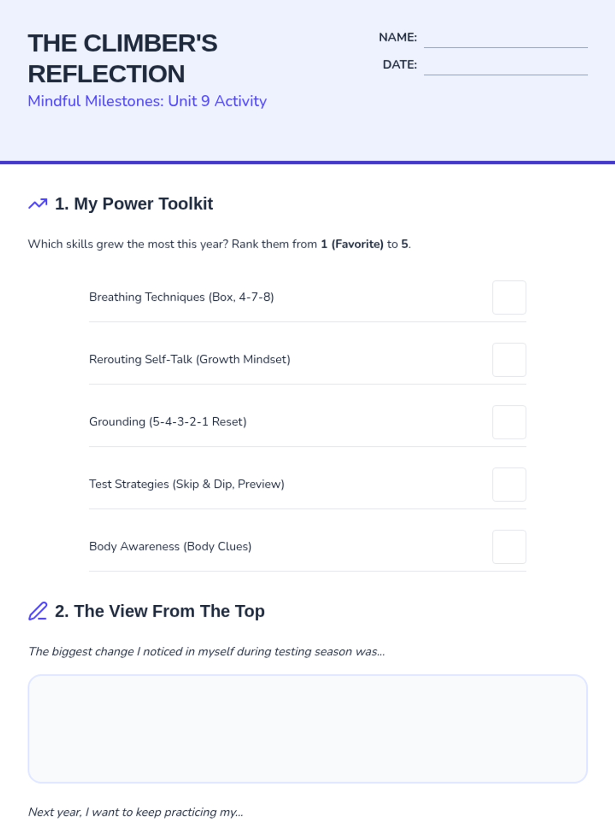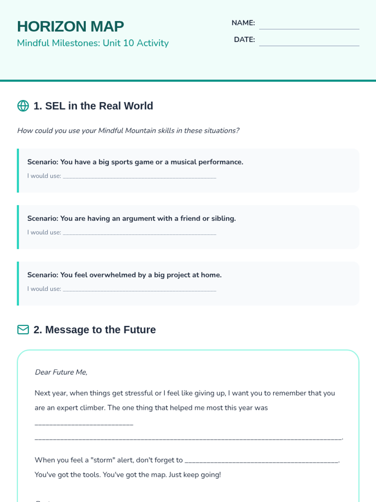 Applying SEL skills to future goals beyond the classroom.