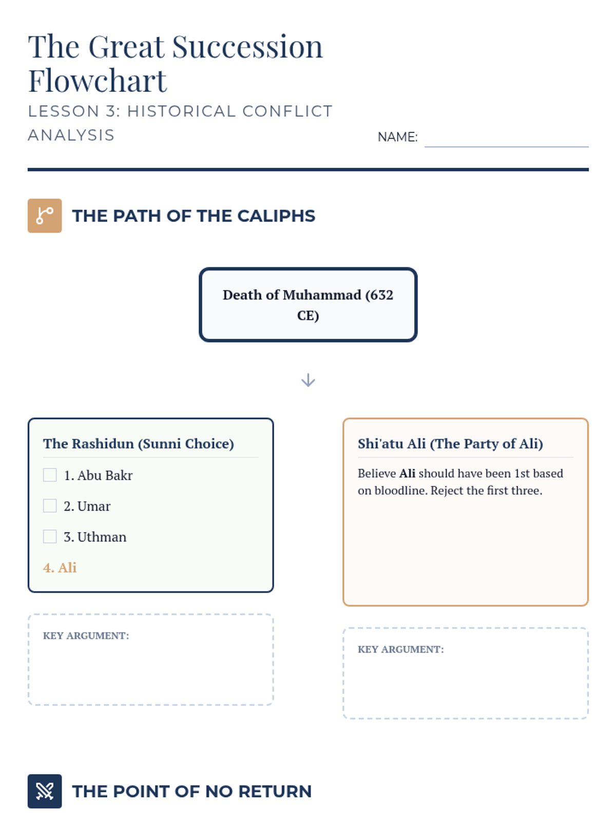 Investigating the expansion of the Islamic empire and the theological division between Sunni and Shia Muslims.