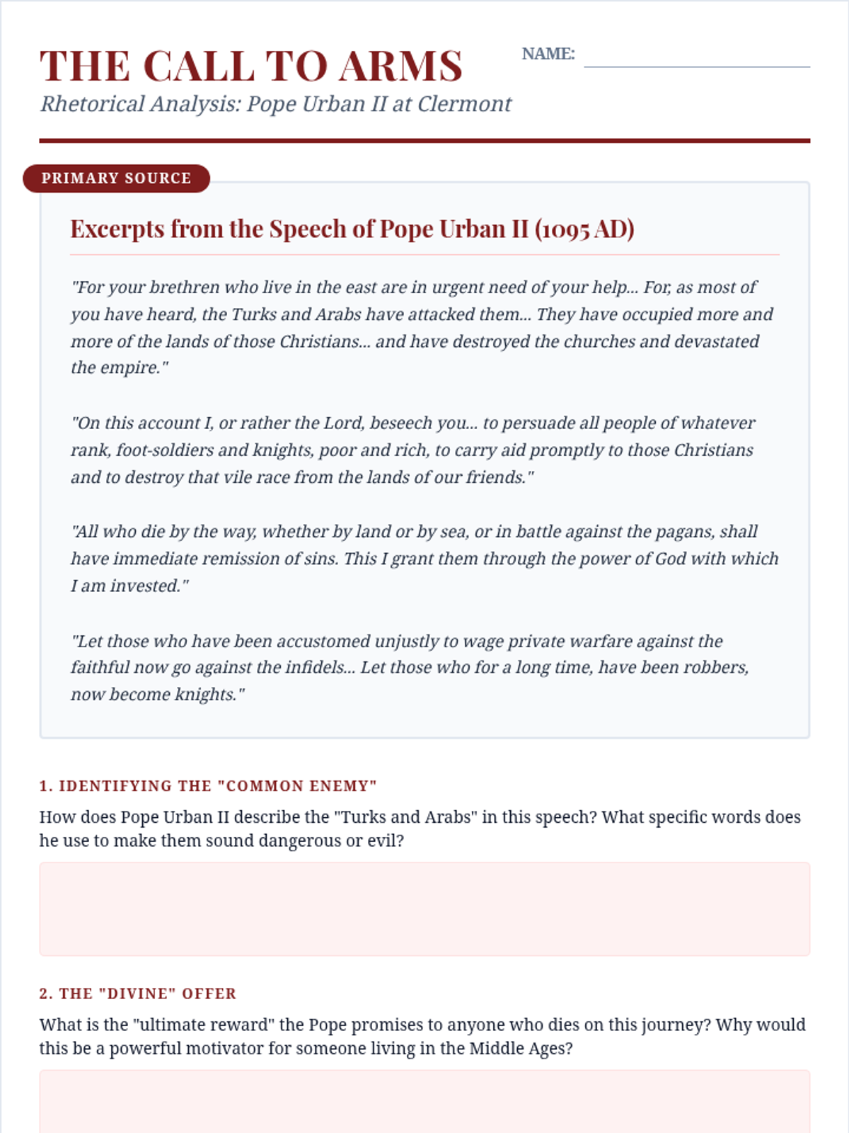 Focusing on the Council of Clermont, students analyze Pope Urban II's call to arms. They identify the multifaceted motivations—religious, political, and economic—that drove Europeans to join the first Crusade.