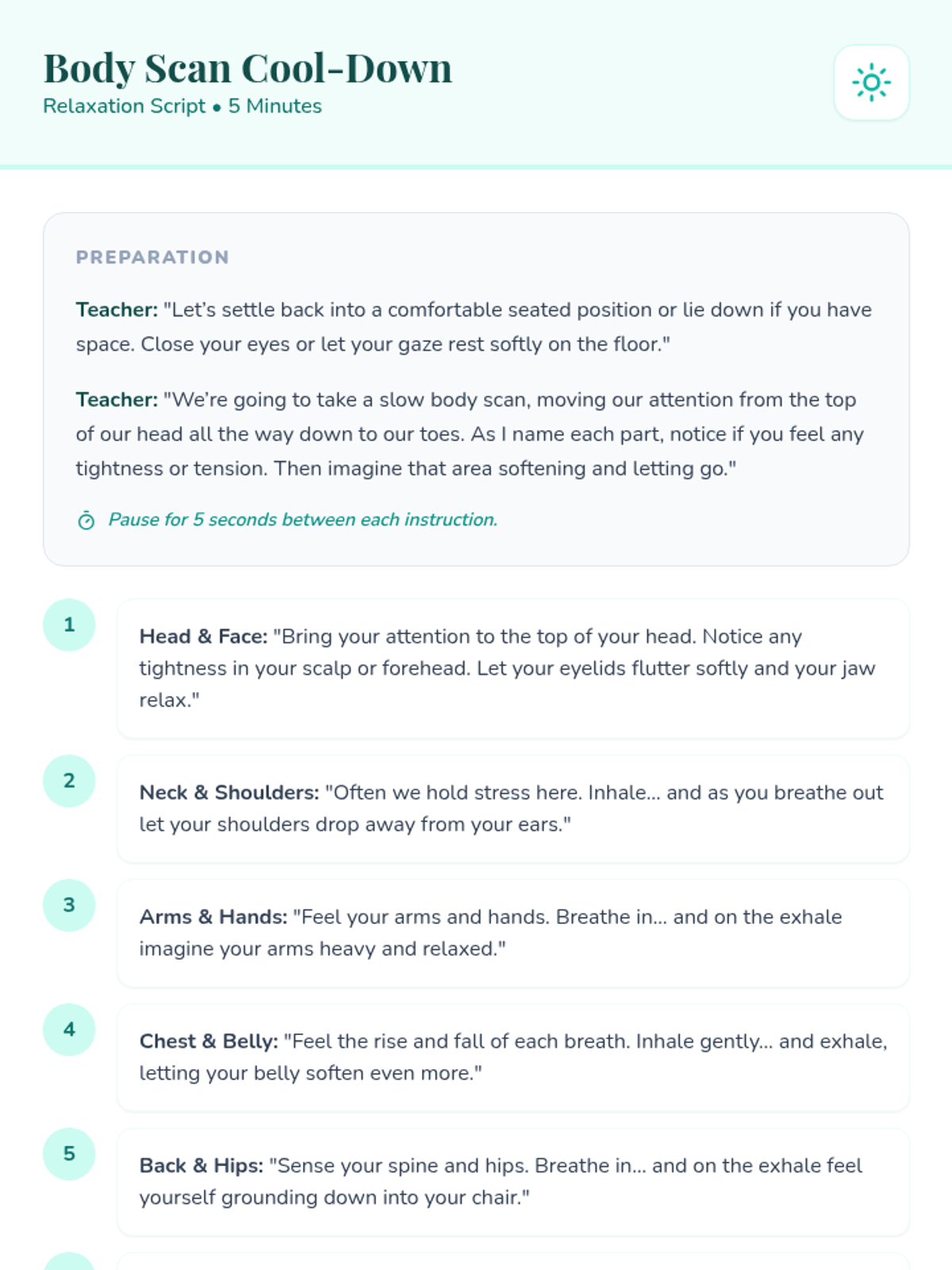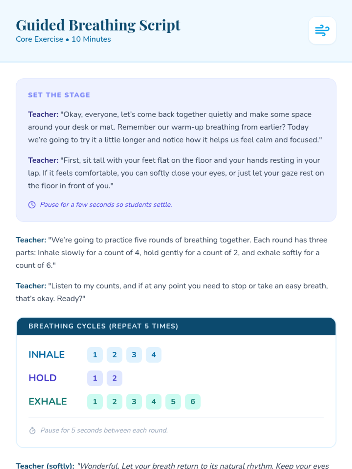 A lesson focused on physical mindfulness techniques, including progressive muscle relaxation and gentle grounding movements to help students regulate their emotions and focus their bodies.