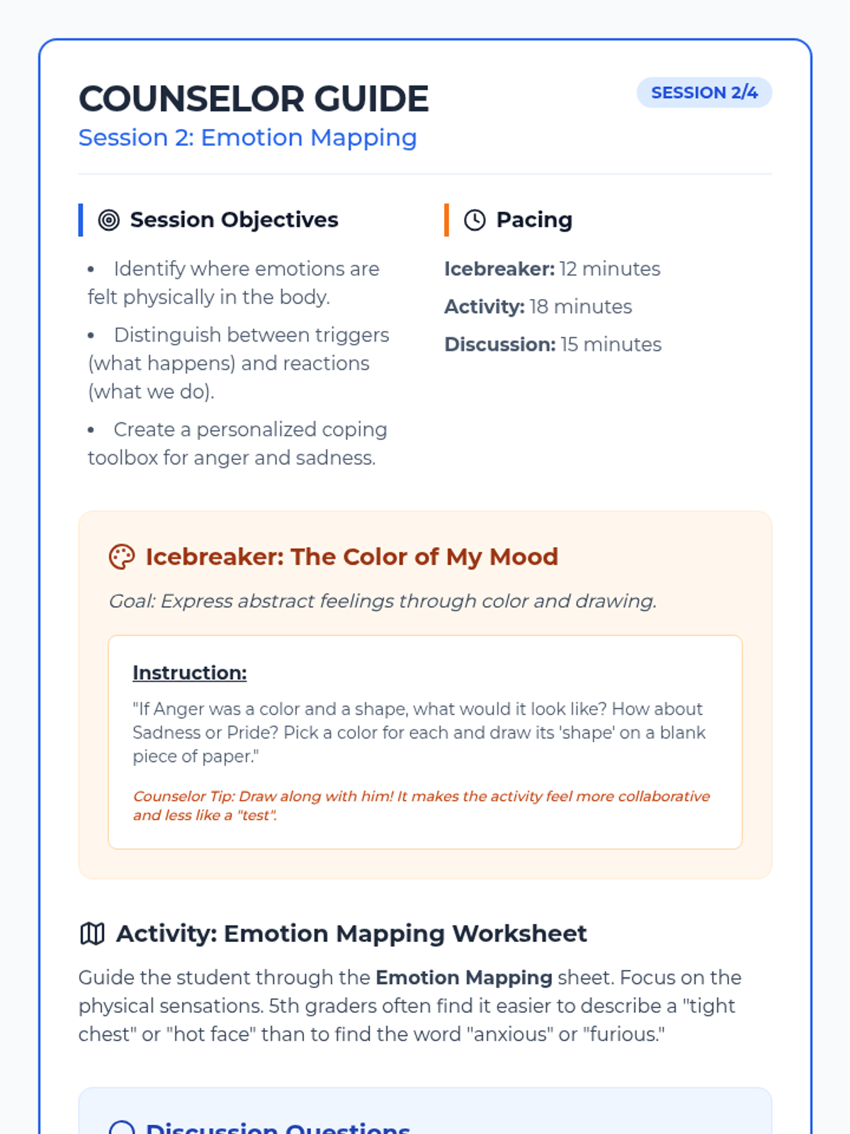 Identify physical signs of emotions and develop a 'toolbox' of coping strategies for managing anger and sadness.