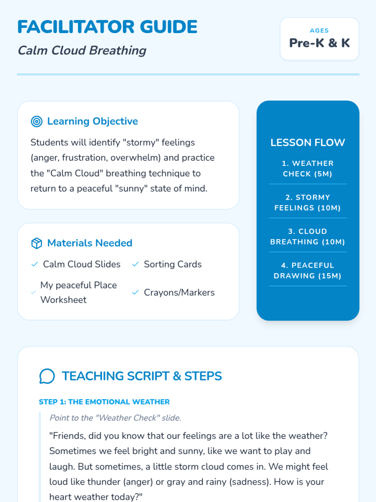A gentle introduction to self-regulation for early learners, using cloud imagery and deep breathing techniques to manage big emotions and find focus.