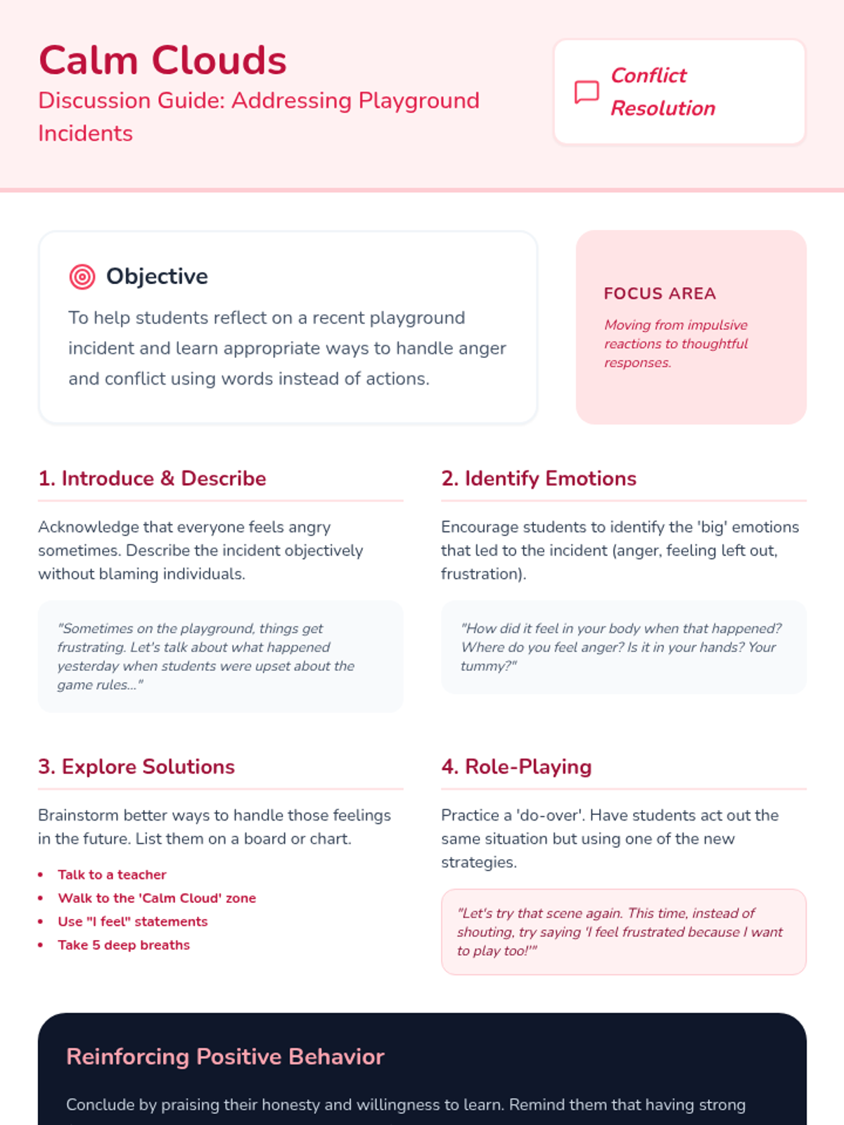 A 30-minute professional development session for preschool and K-8 staff focusing on restorative circles, affective statements, and re-entry reflection tools.