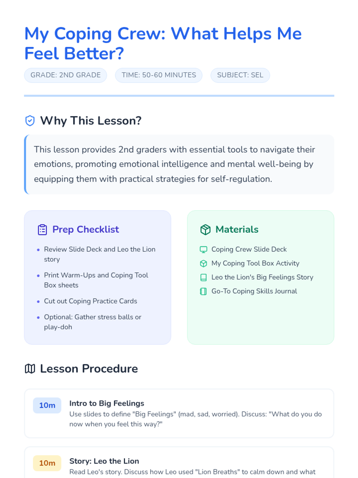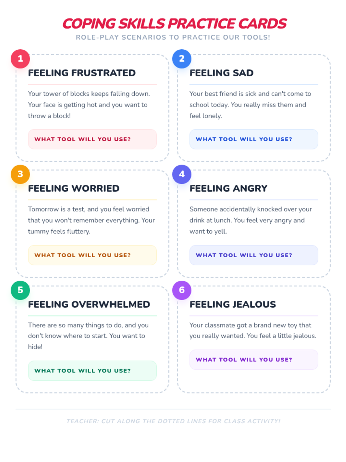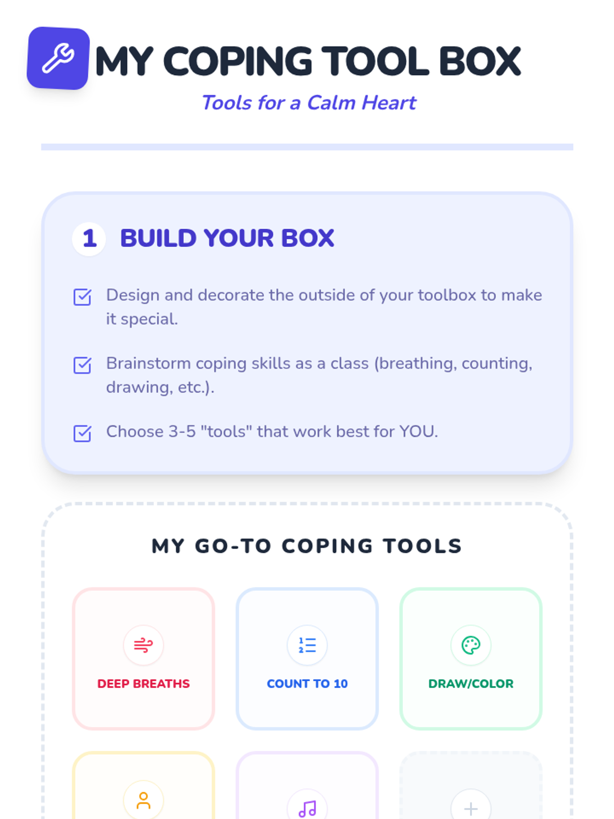 Equips students with practical self-regulation strategies to navigate big feelings like anger, sadness, or worry.