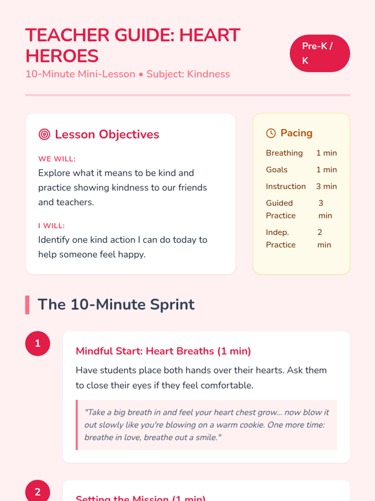 A 10-minute introductory lesson for Pre-K/K students on integrity, focusing on doing the right thing even when no one is watching through the 'Heart Compass' concept.