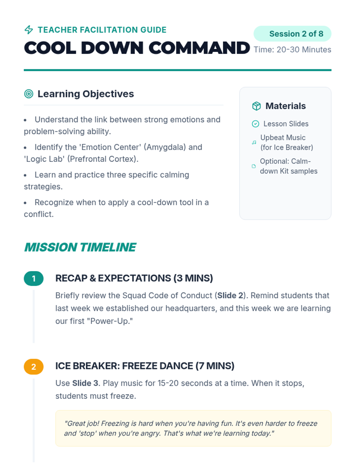 Students learn the importance of calming down before attempting to solve a problem. They explore how strong emotions affect logic and identify personal cool-down strategies.