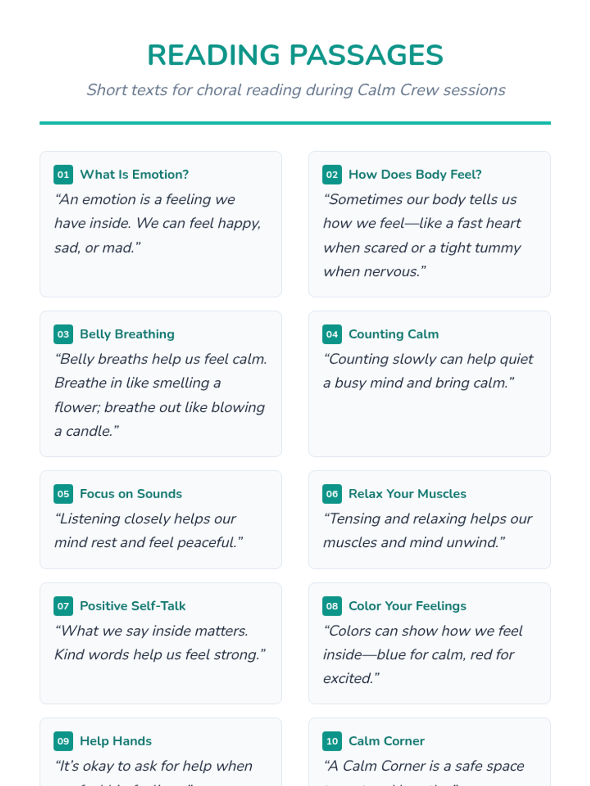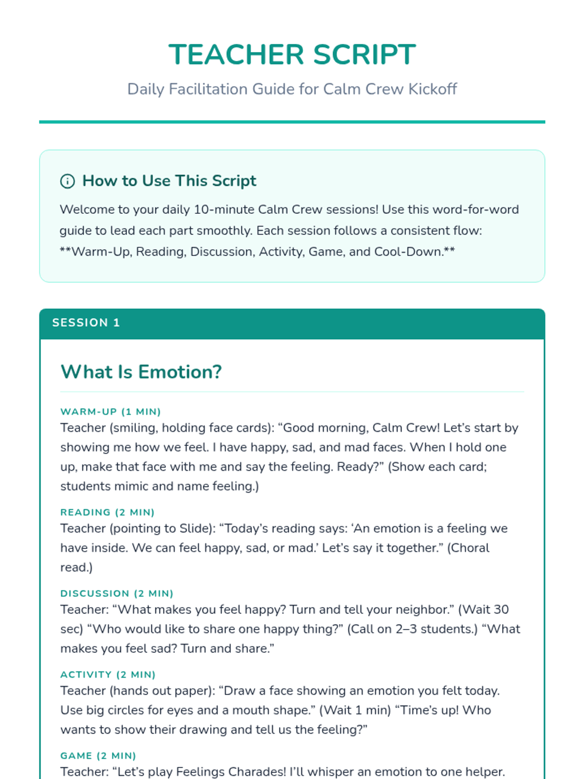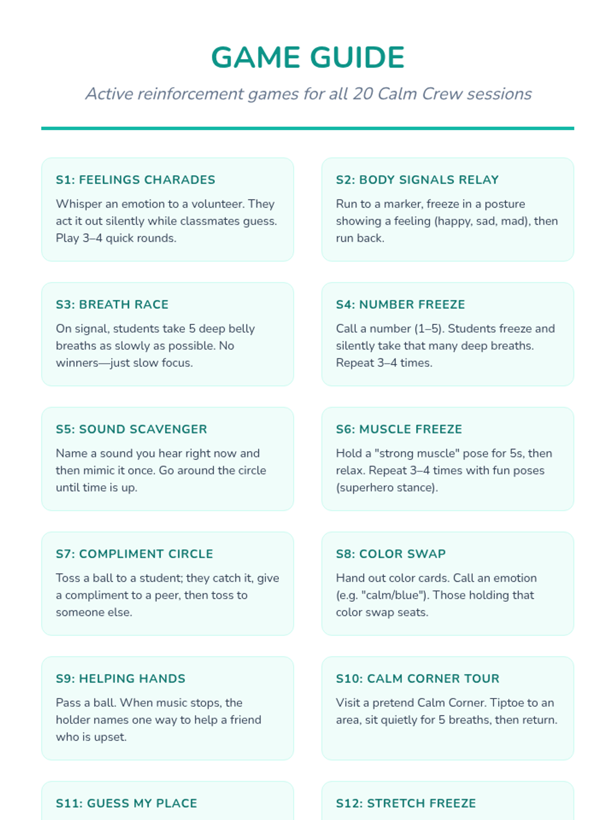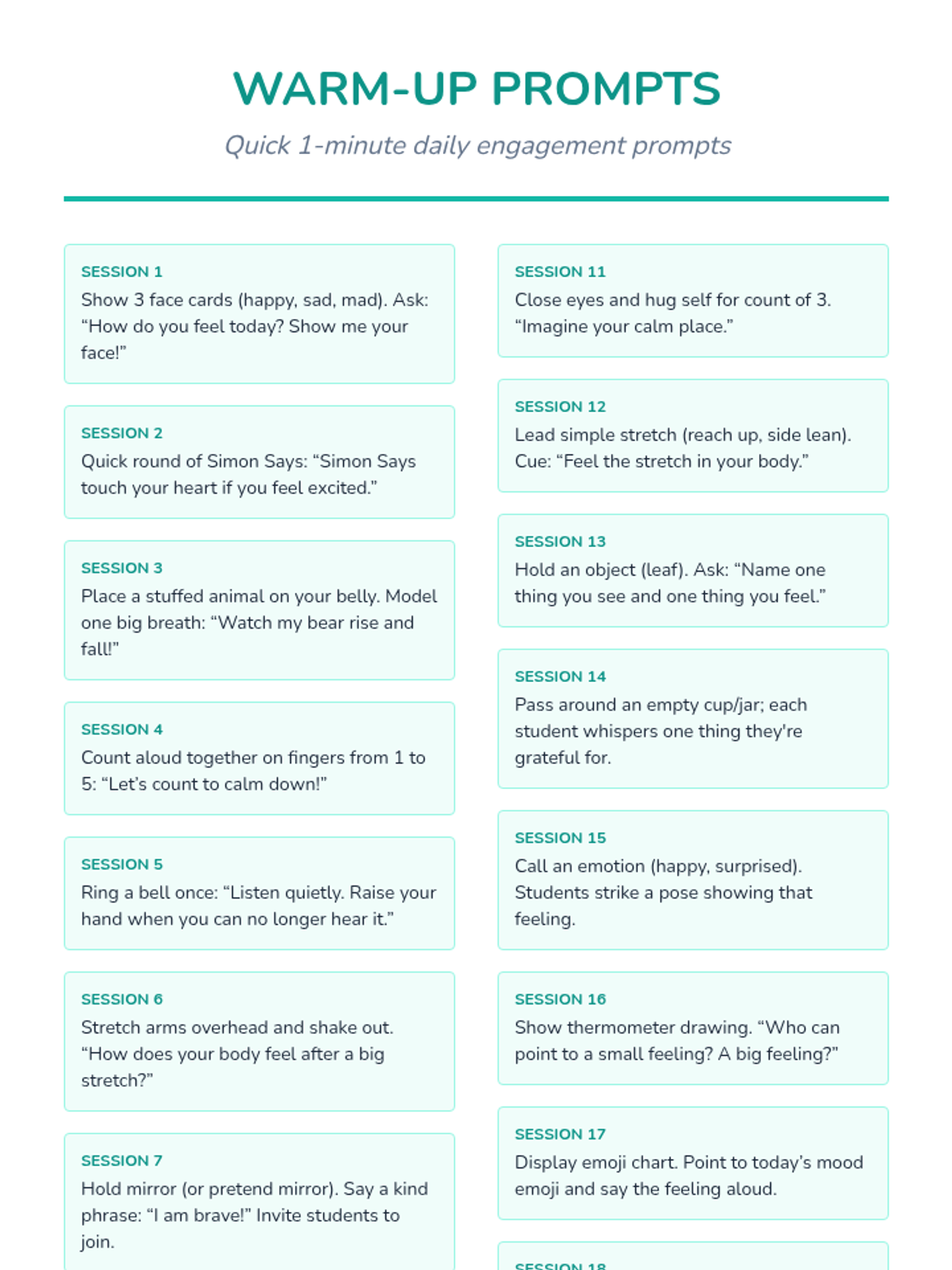 The complete 20-session program featuring daily 10-minute activities, discussions, and games to build emotional resilience.