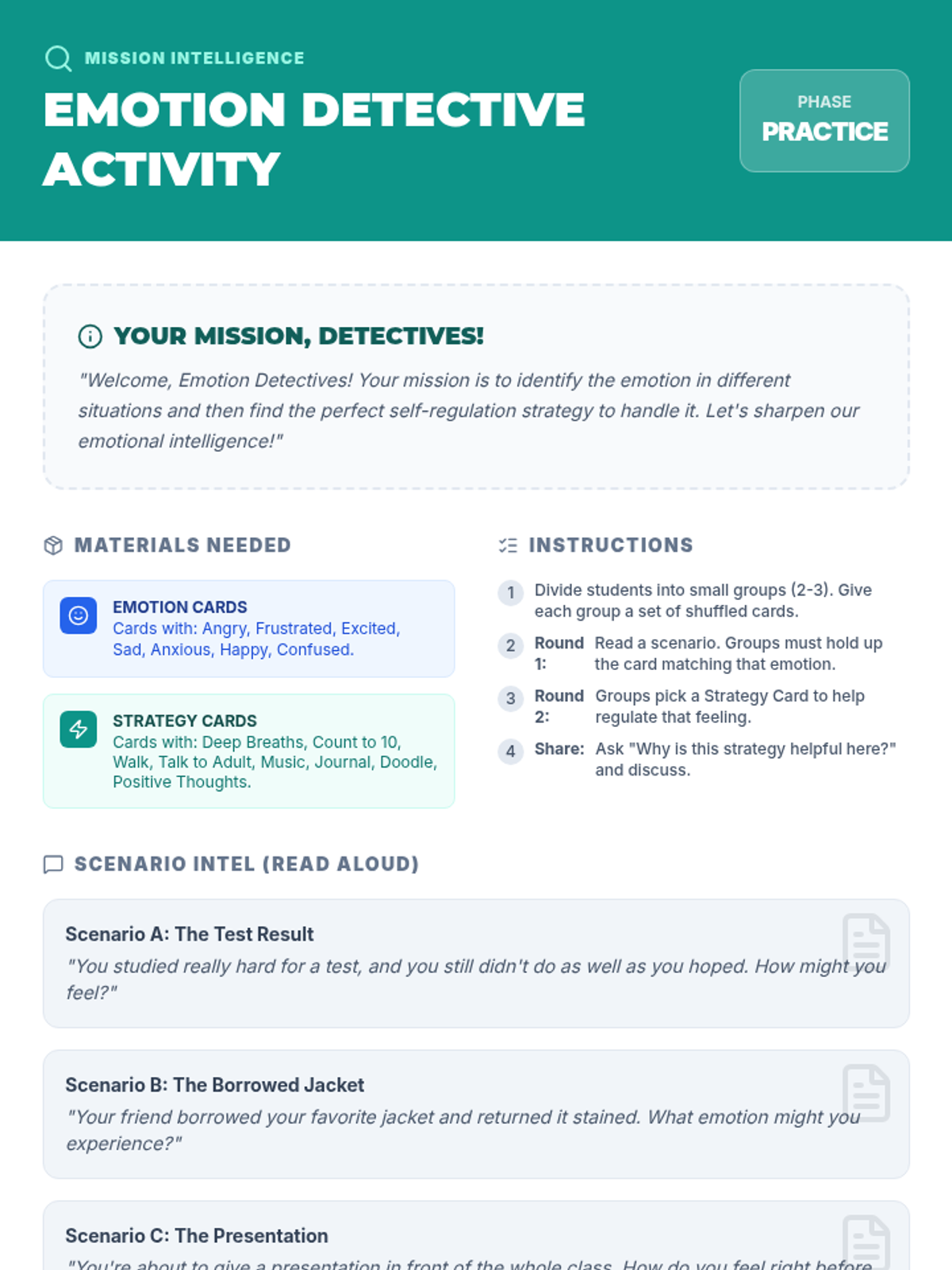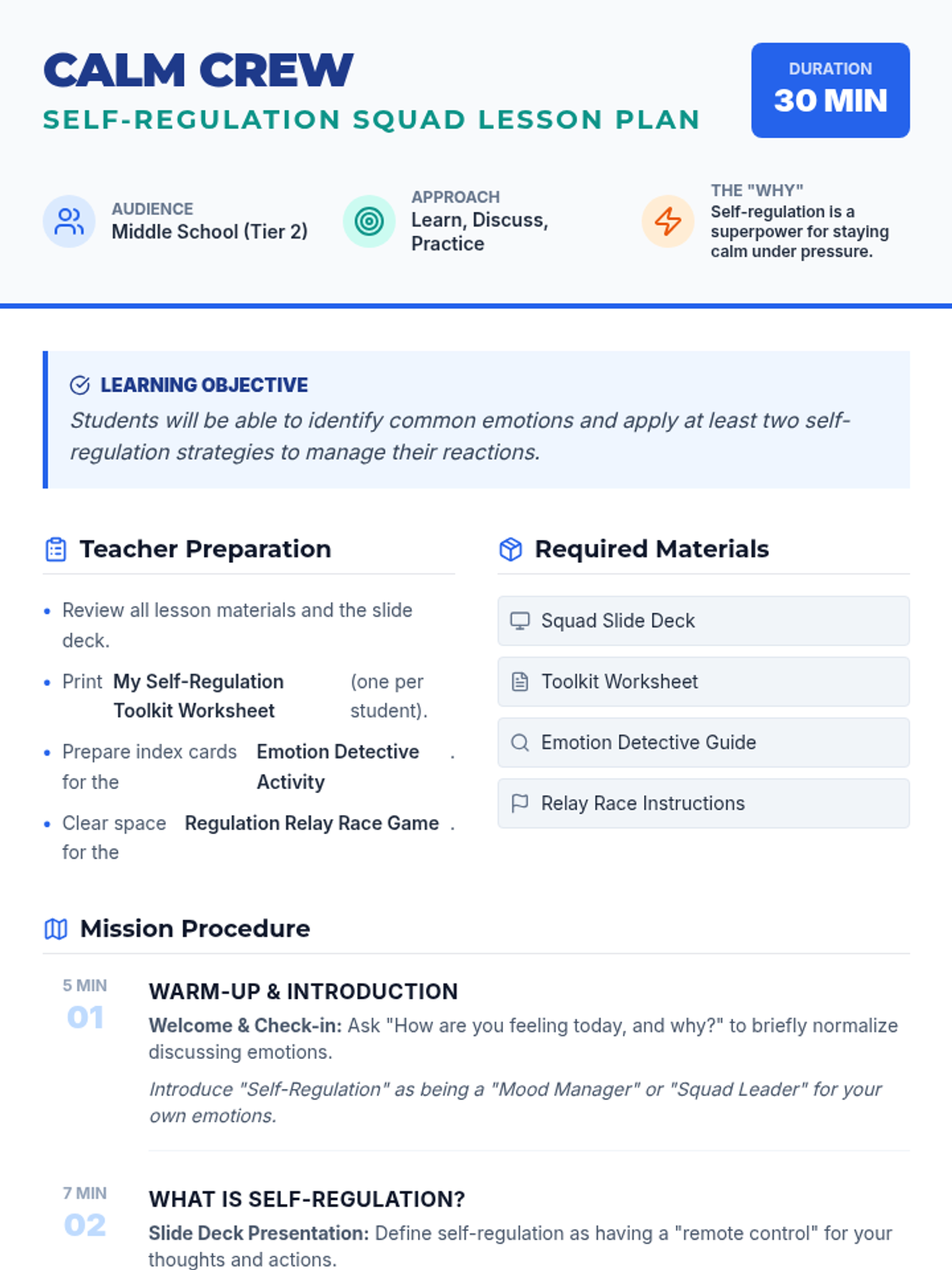 A Tier 2 small group lesson for middle schoolers to identify emotions, recognize triggers, and build a personalized toolkit of self-regulation strategies.