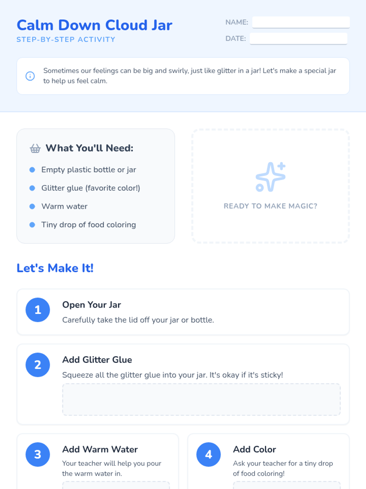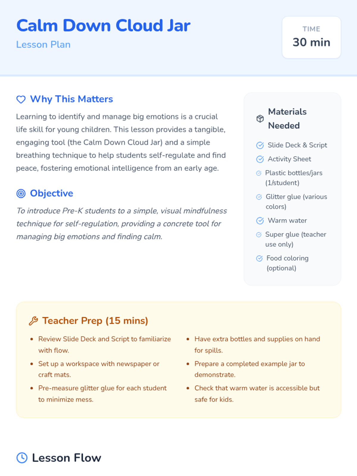 A 30-minute mindfulness lesson for Pre-K students to create a visual self-regulation tool and practice calming breathing techniques.
