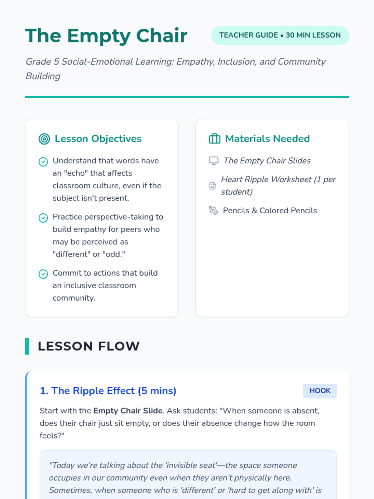 A lesson designed to help students develop mindfulness and grounding techniques to improve focus and manage emotional de-escalation. Students will learn practical strategies to identify when they are drifting and how to return to their tasks with a calm mind.