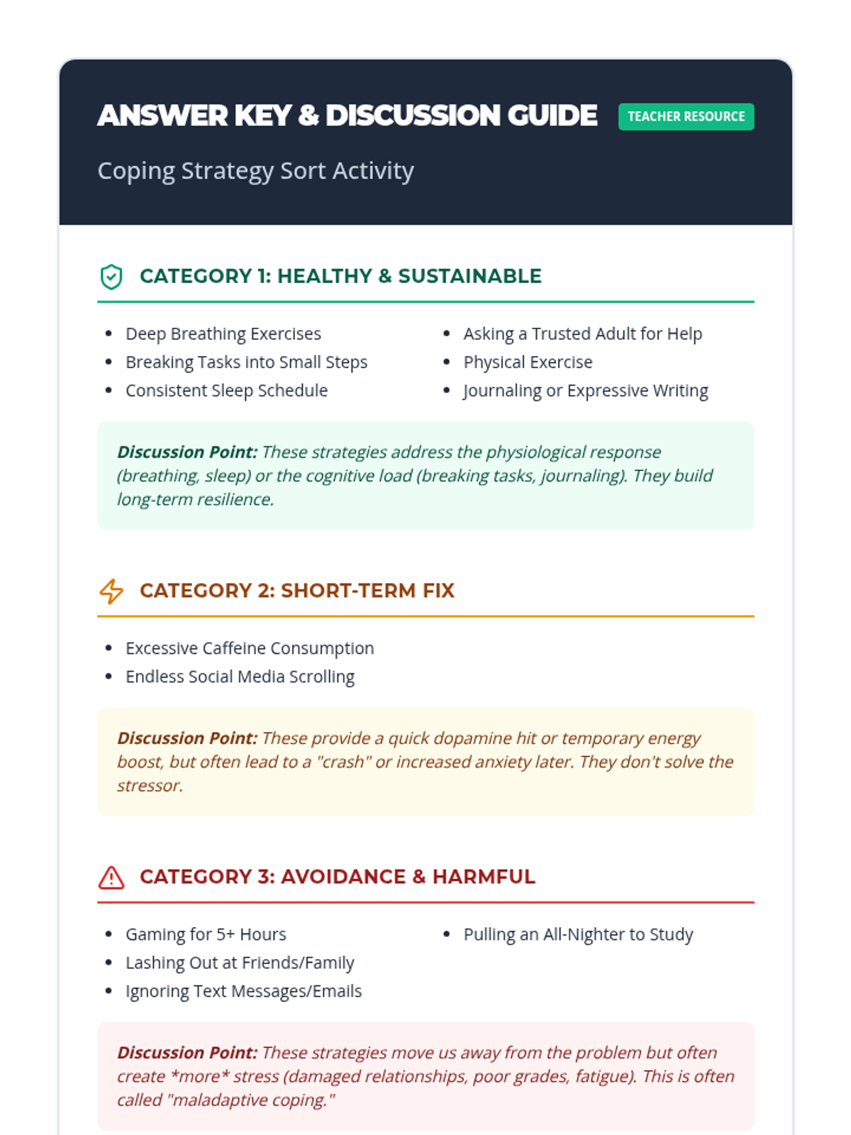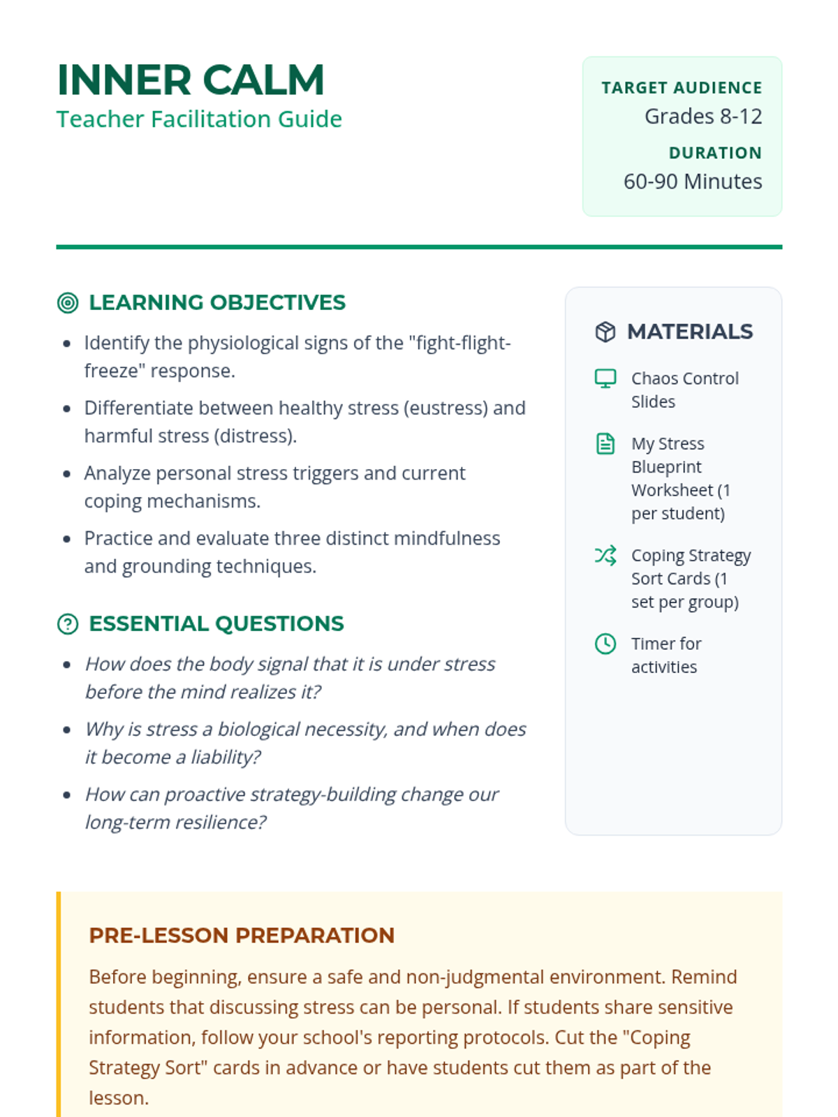 A comprehensive lesson designed for grades 8-12 that explores the physiological and psychological aspects of stress, providing students with a practical toolkit of management strategies.