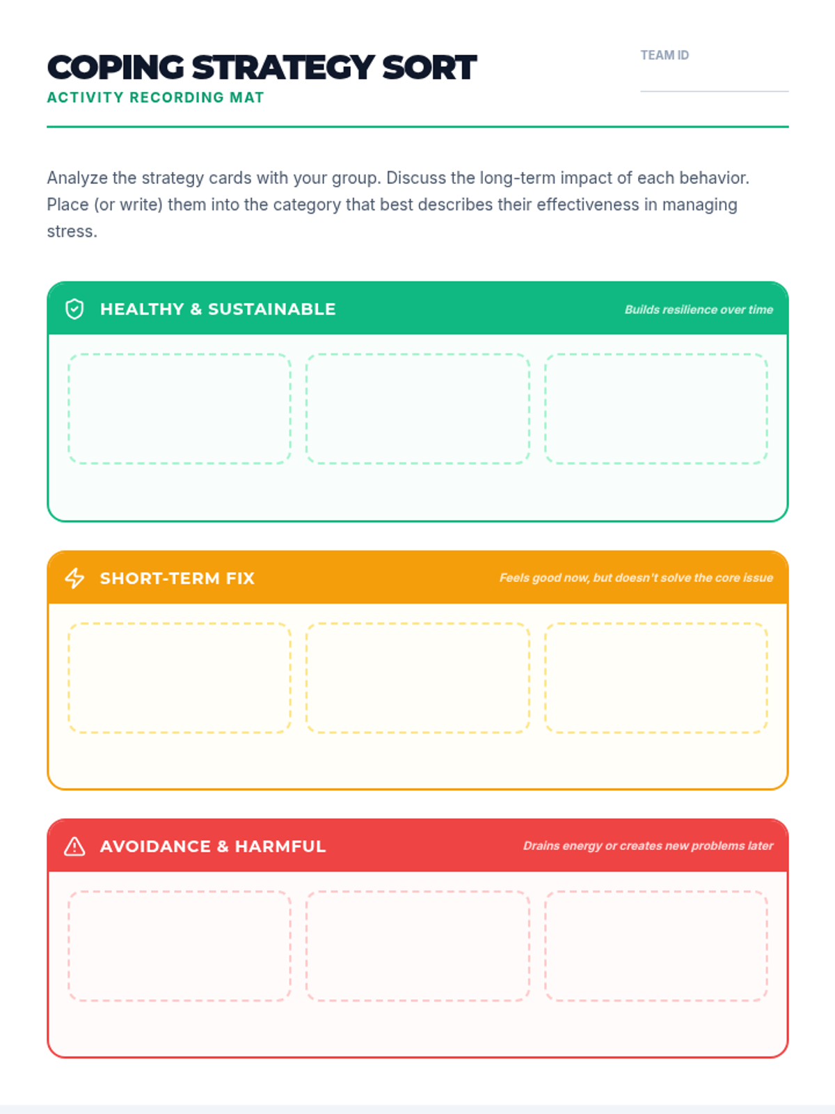 Students will explore a variety of sensory and cognitive coping strategies. They will evaluate which techniques work best for them and begin building their personal 'Coping Menu'.