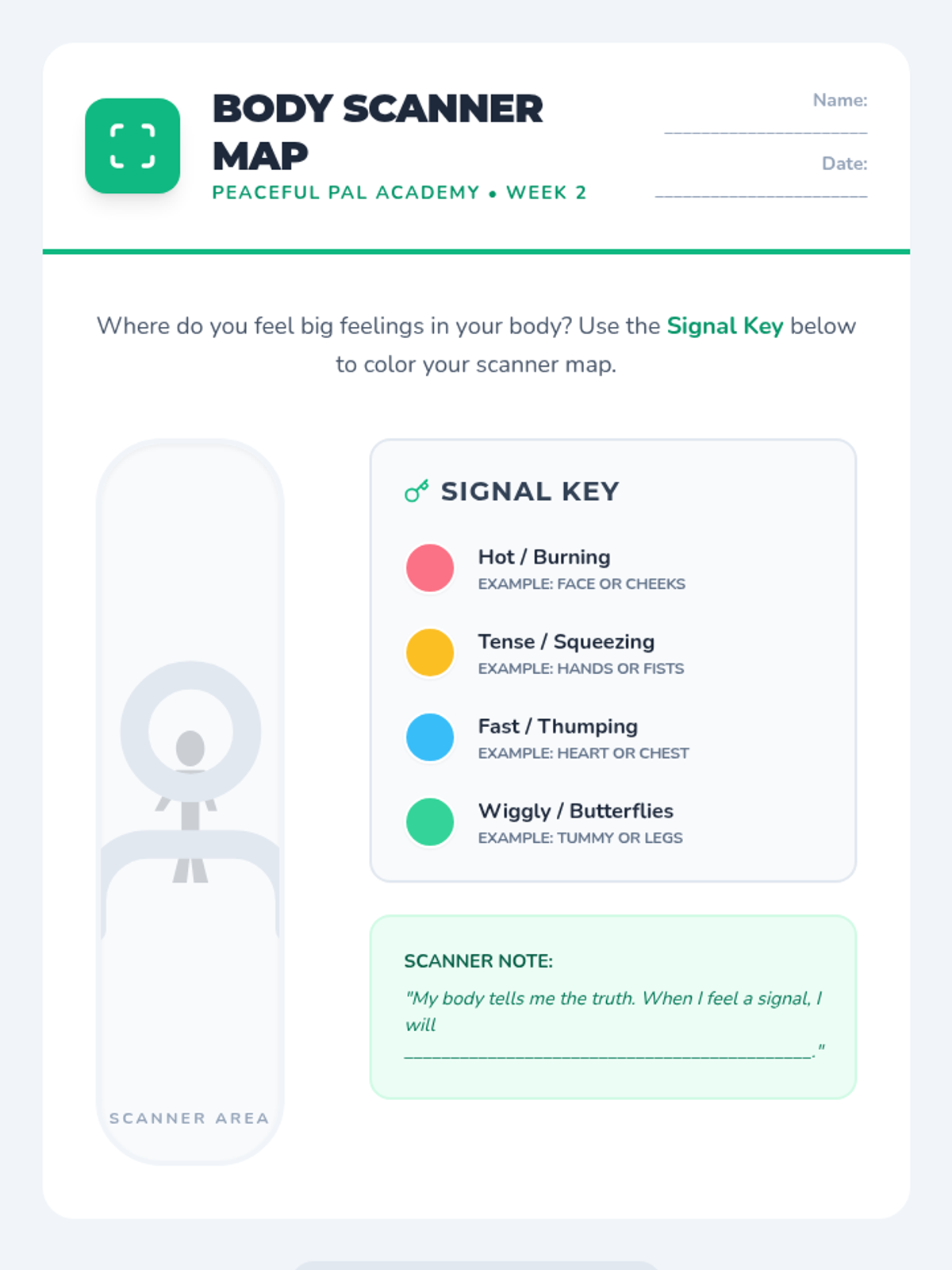 Students identify physical sensations in their bodies that signal they are becoming upset or frustrated.