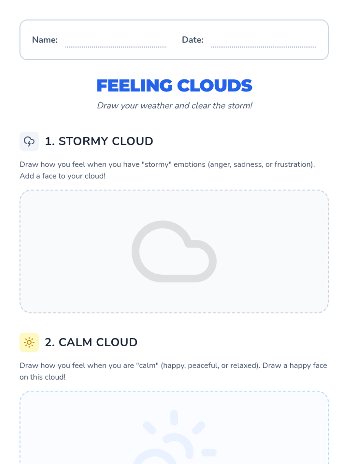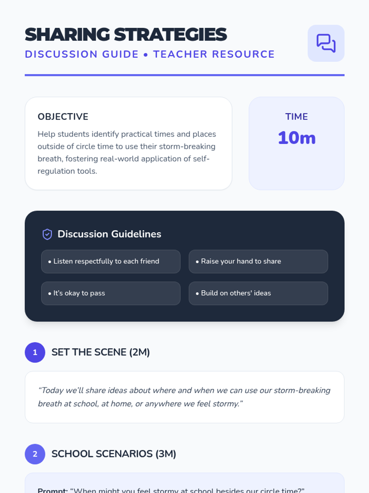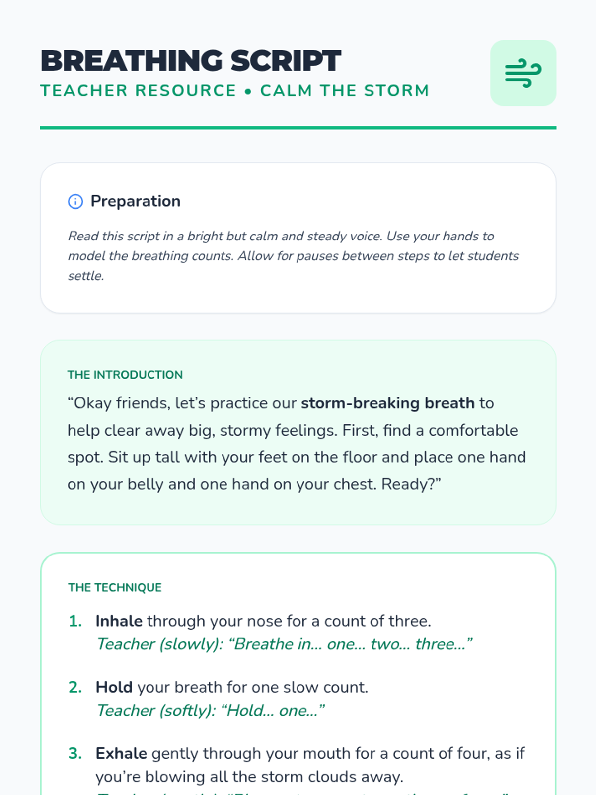 A 30-minute social-emotional lesson for 2nd graders to help them identify intense emotions using a weather metaphor and learn a 'storm-breaking' breathing technique for self-regulation.