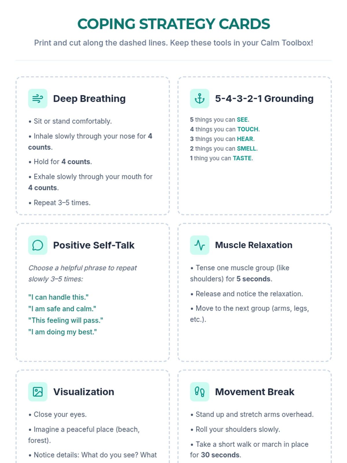 A 30-minute Tier 3 intervention for 7th-grade students focused on building personalized coping strategies and self-regulation skills. Students identify emotions, explore varied strategies, and create a custom toolbox for managing stress.