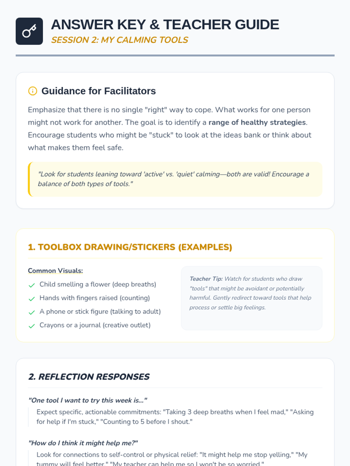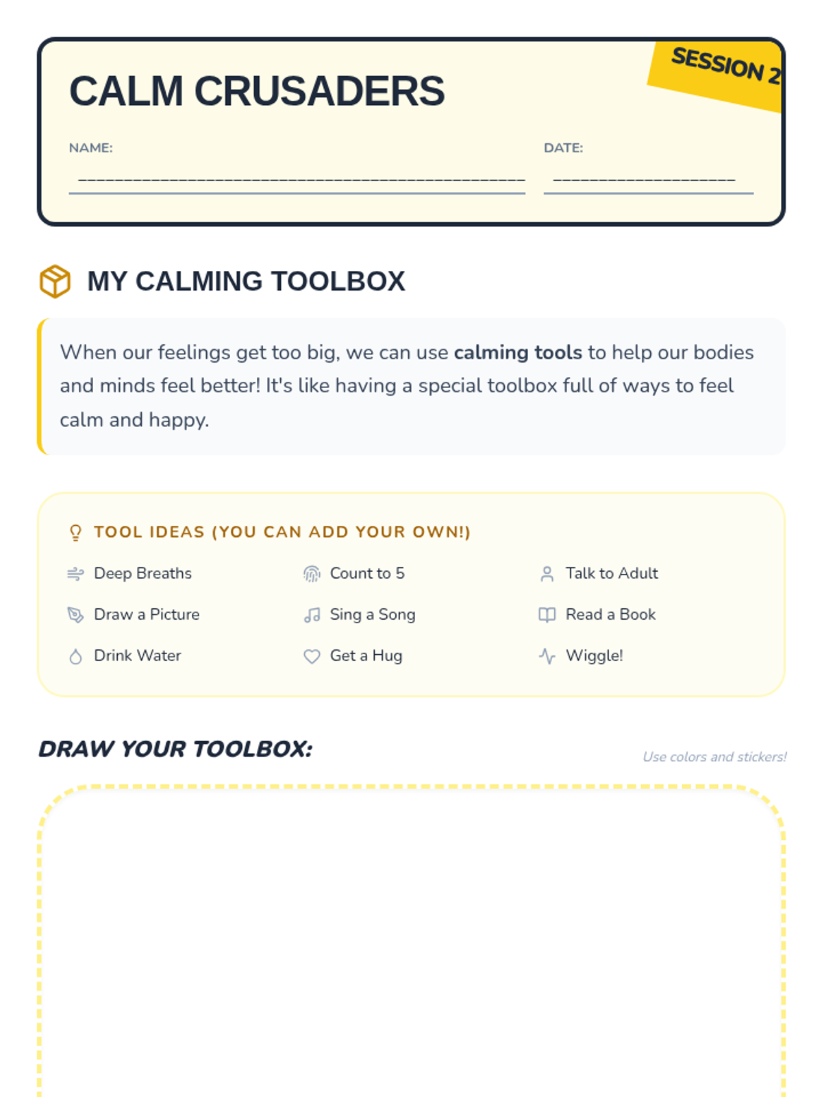 Students explore and practice various strategies to help them stay calm and in control of their emotions.