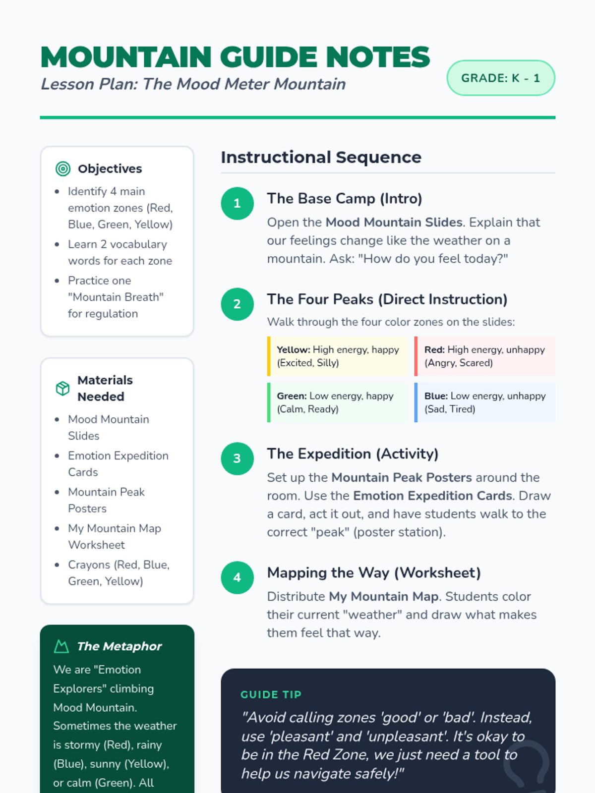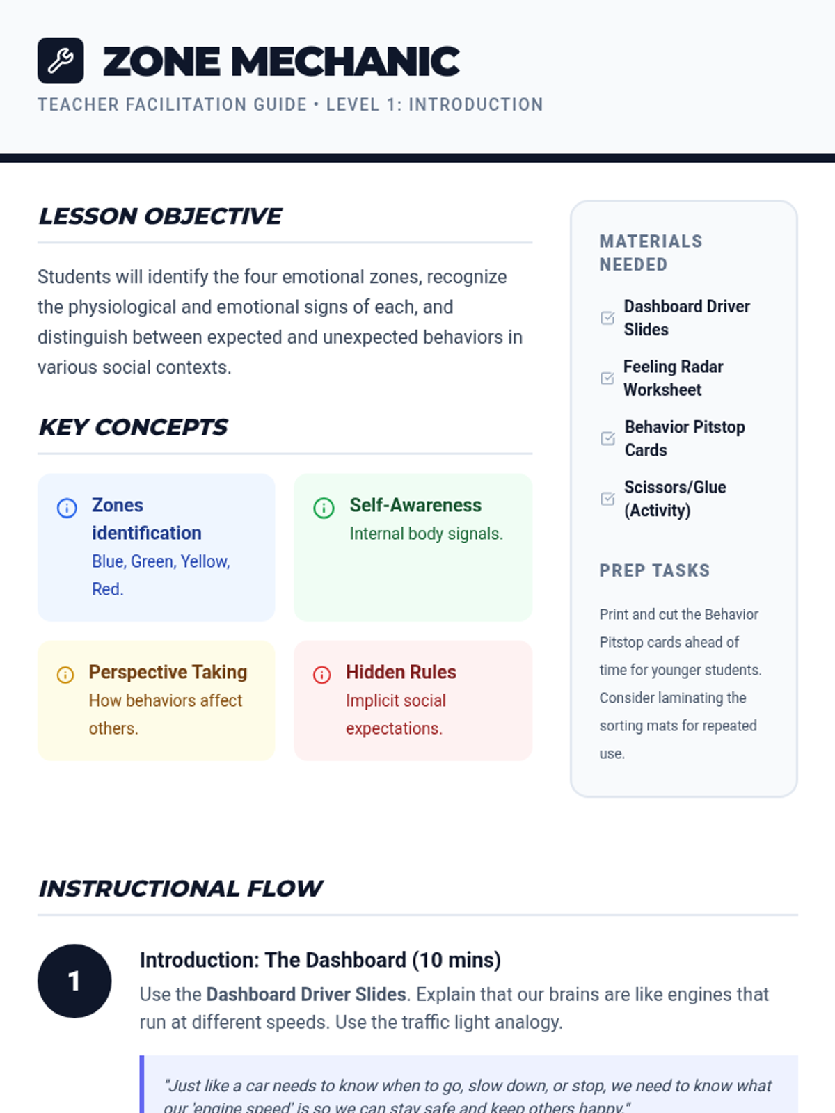A lesson exploring the psychological zones of learning: Comfort, Stretch, and Panic. Students learn to identify their current zone, understand the benefits of the 'Stretch Zone' for growth, and develop coping strategies for when they feel overwhelmed.