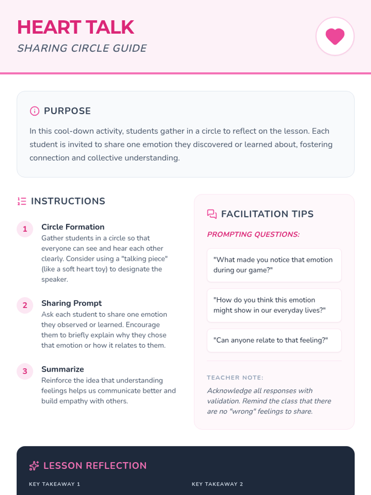 A 30-minute professional development session for preschool and K-8 staff focusing on restorative circles, affective statements, and re-entry reflection tools.