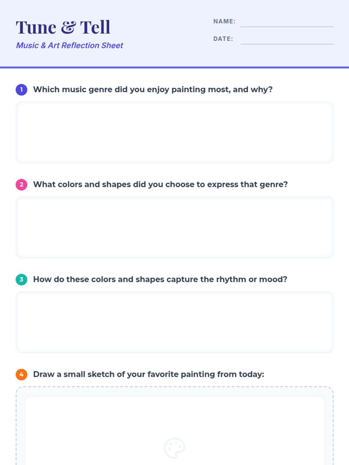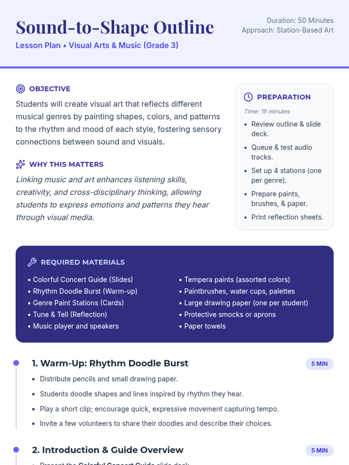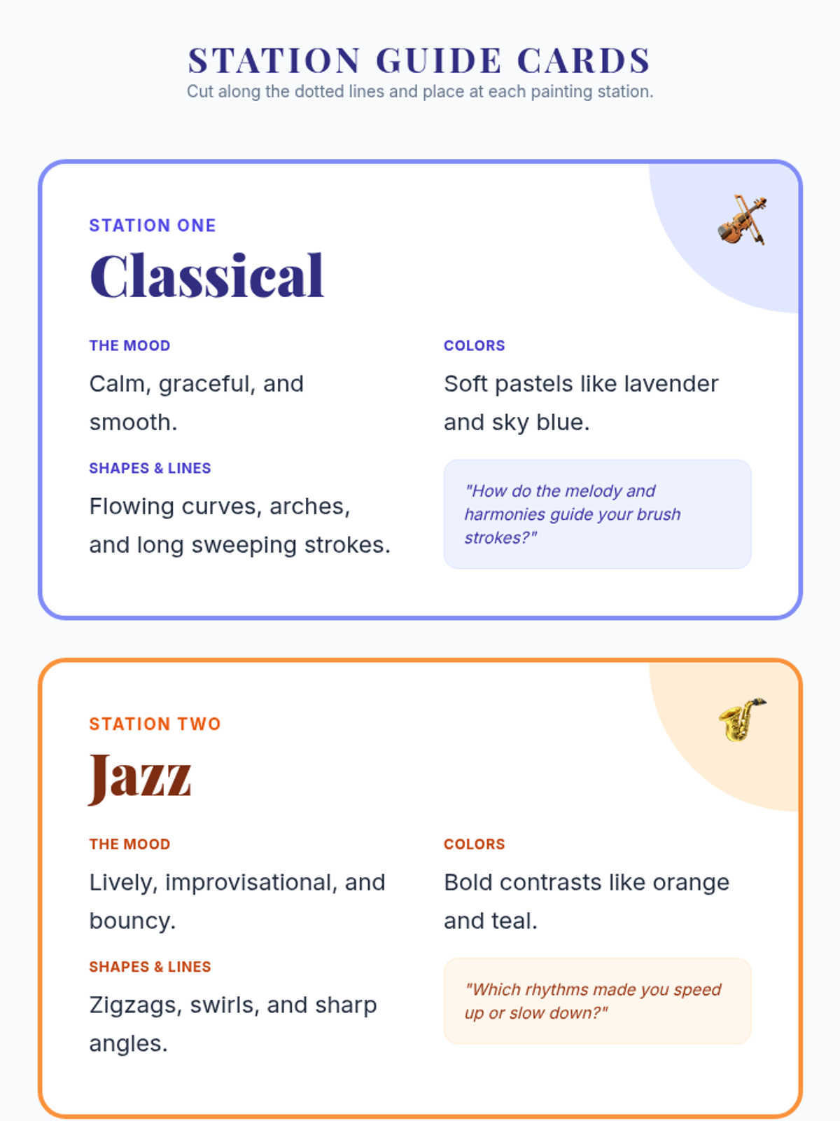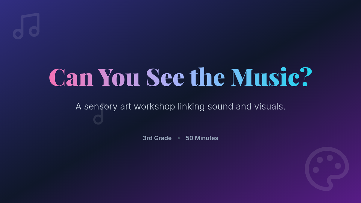 A sensory art workshop where 3rd grade students paint to different music genres, exploring cross-disciplinary creativity and sensory connections between sound and visuals.