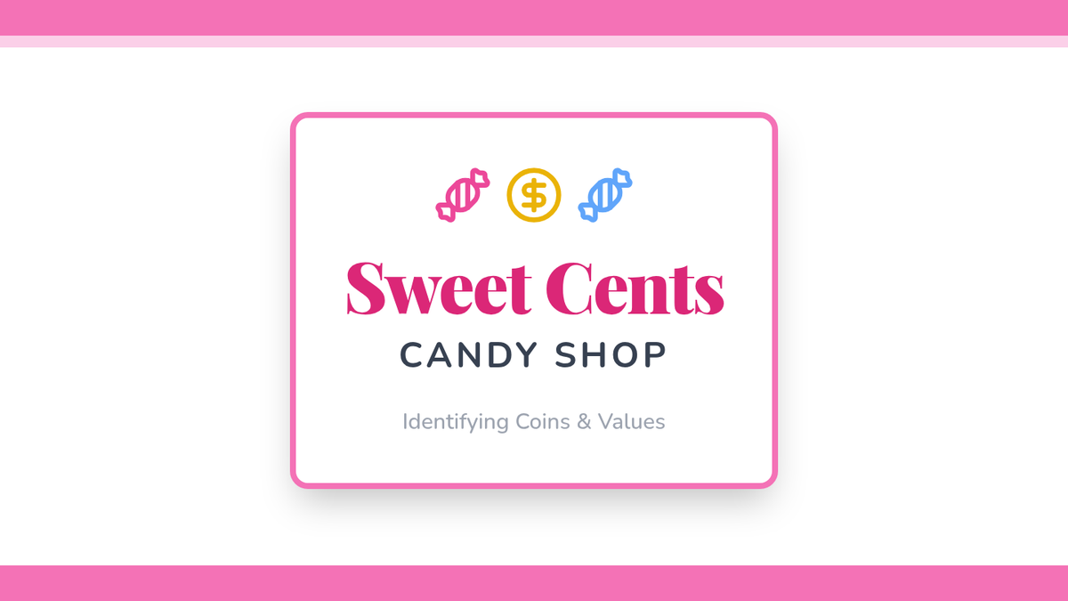A sweet introduction to identifying and counting coins. Students visit a virtual candy shop, learn to recognize pennies, nickels, dimes, and quarters, and use their own 'coin purses' to buy treats.