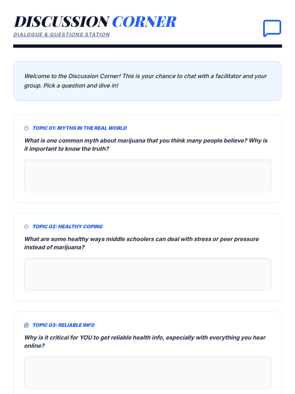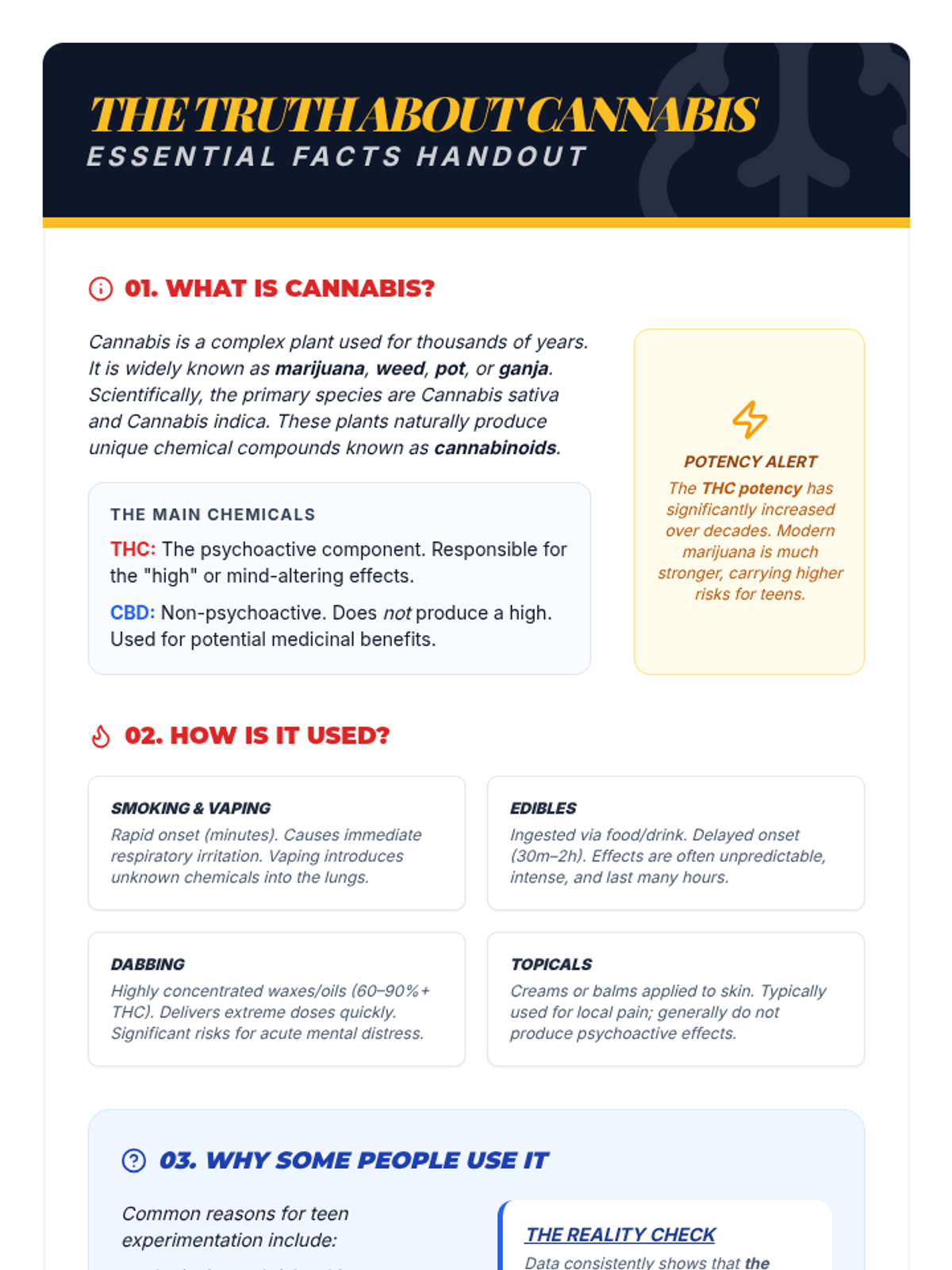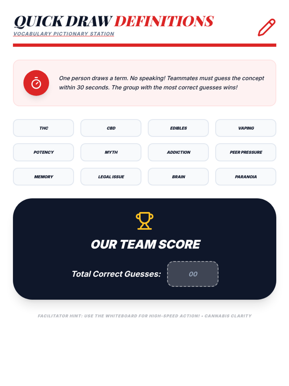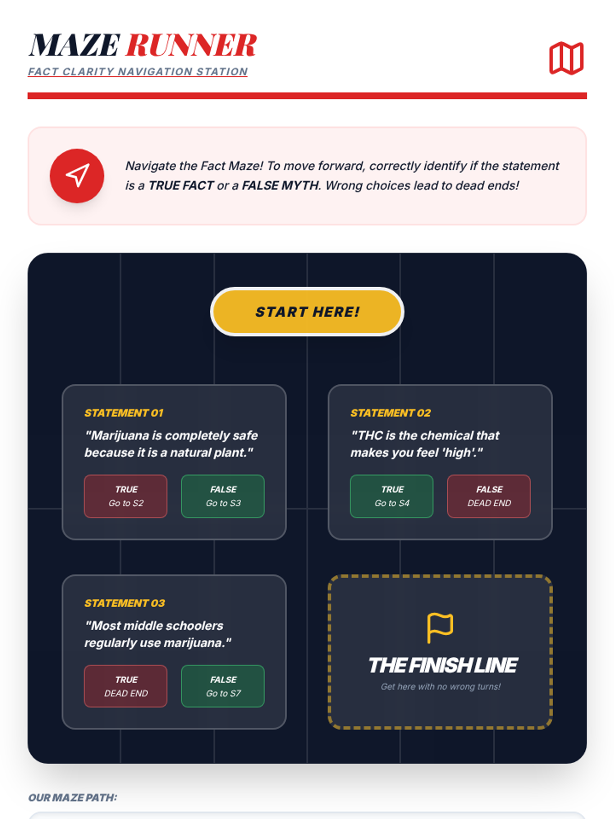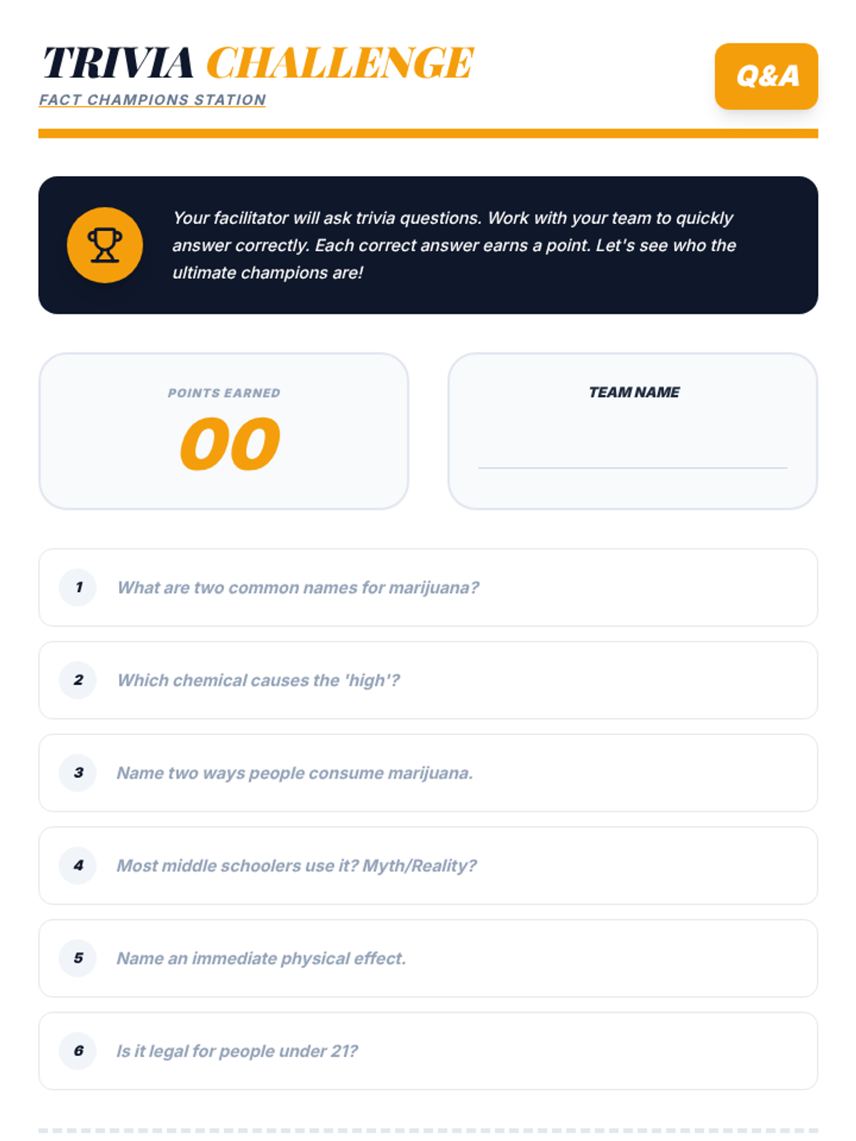 An interactive 50-minute fair where students rotate through various stations to learn the truth about marijuana. This lesson uses games, role-plays, and discussions to build critical thinking and healthy decision-making skills.