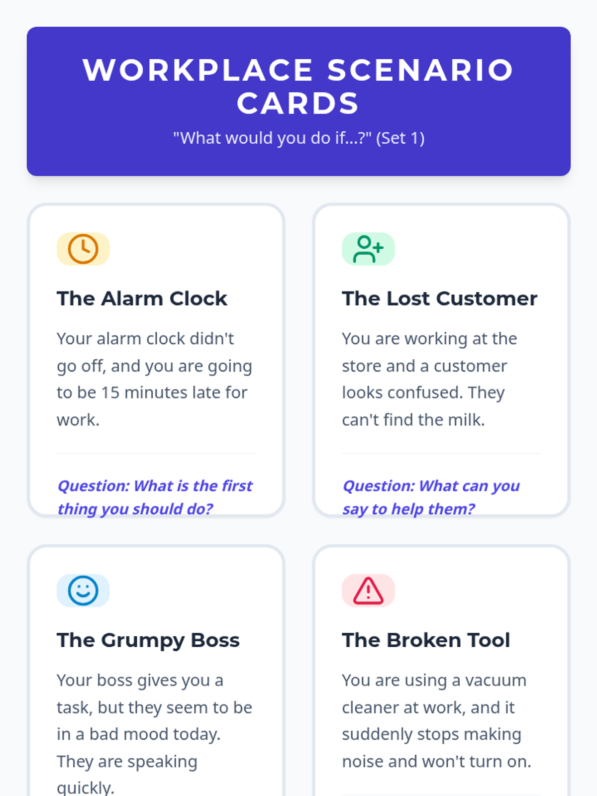 A high-energy, 30-minute coaching session focused on five critical self-advocacy scenarios. Includes role-play, visual aids, and practical toolkits for immediate application in real-world settings.