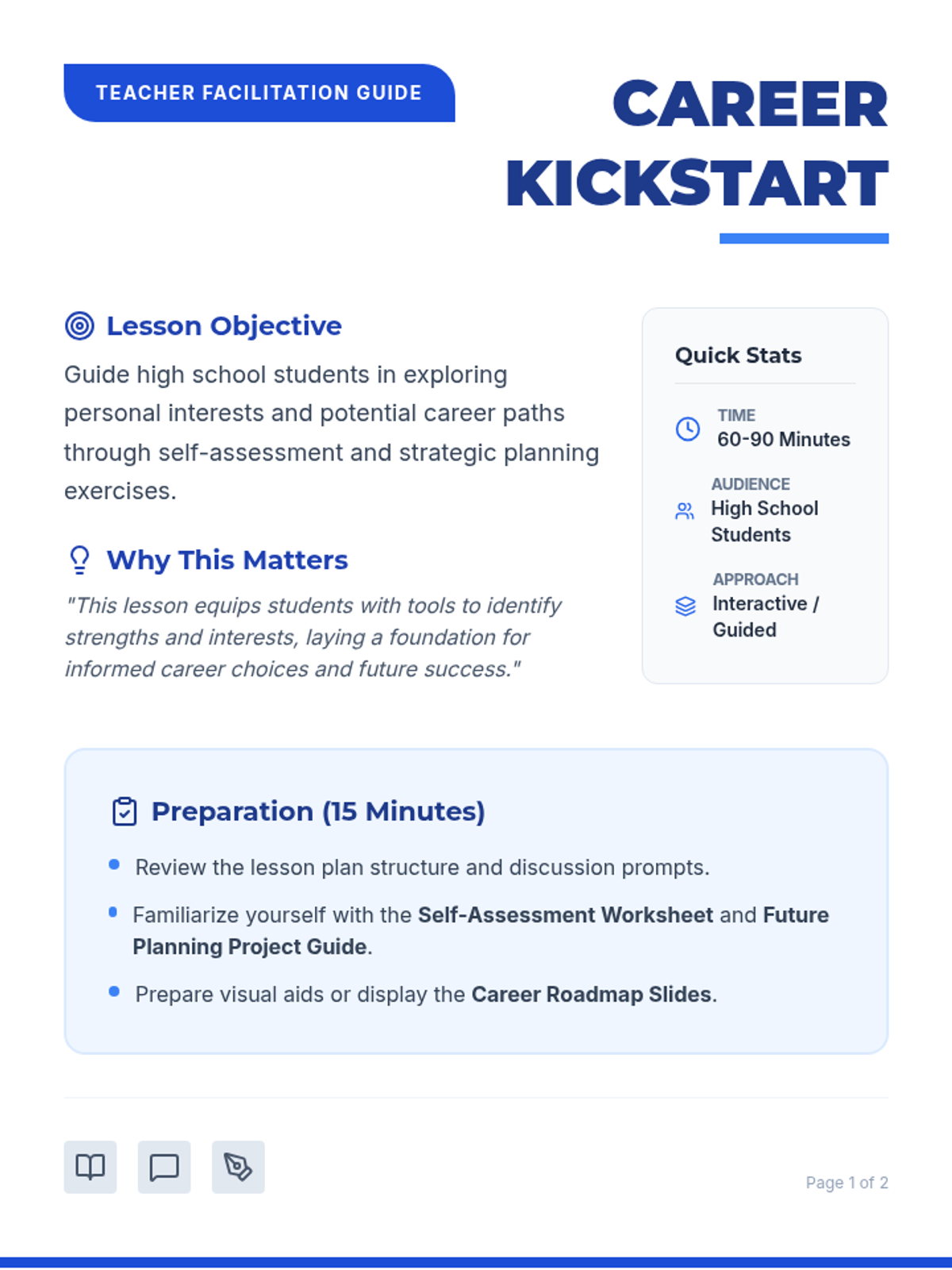 A comprehensive career exploration lesson for high school students, focusing on self-assessment, interest discovery, and long-term goal setting.