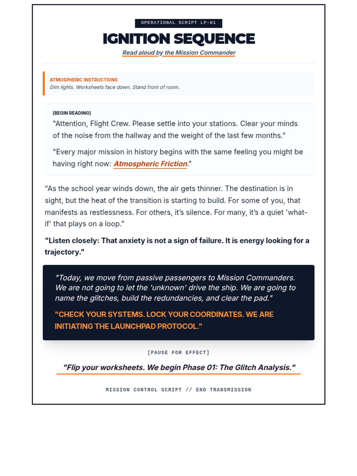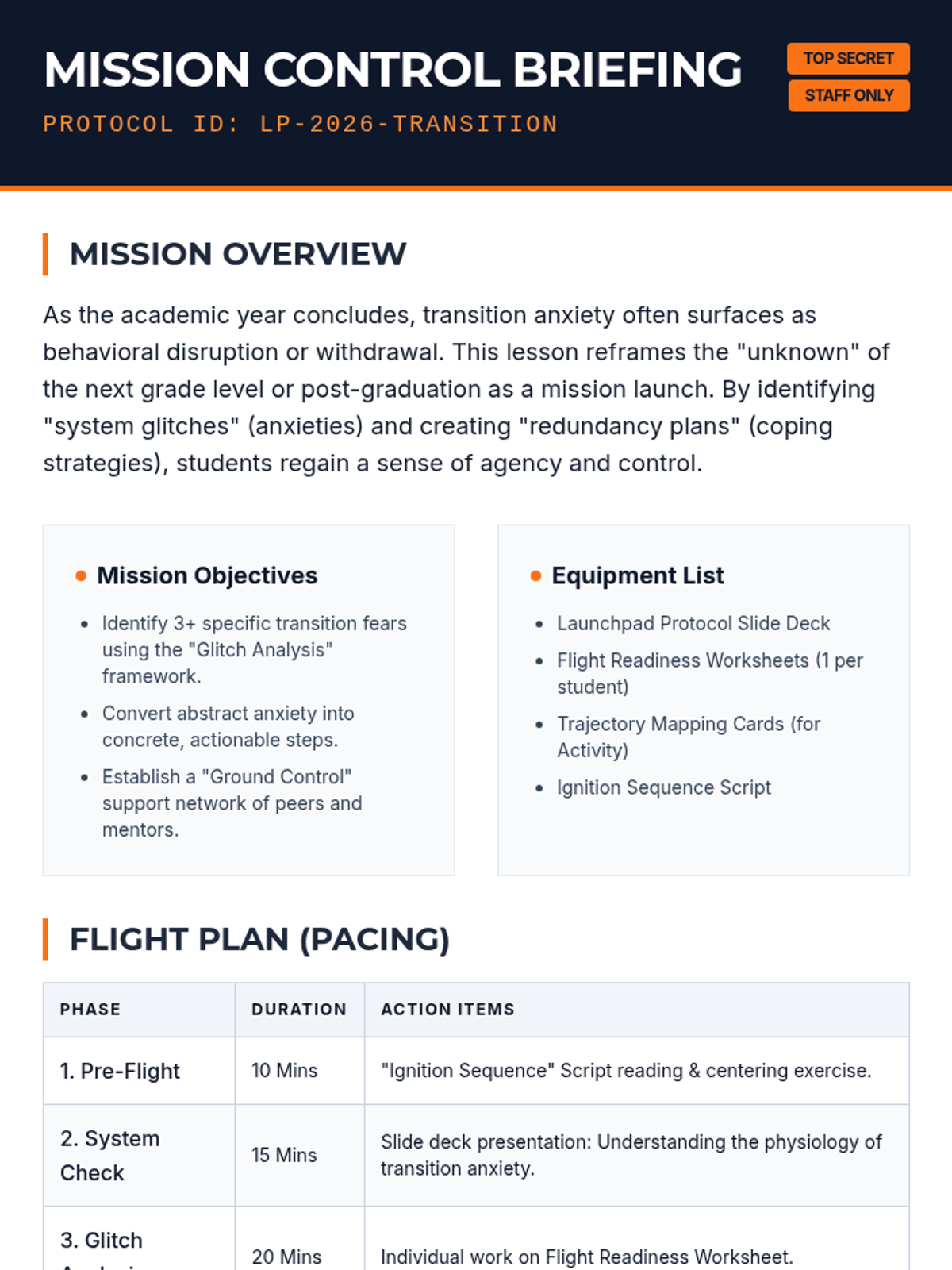 A comprehensive transition program for high school students to manage end-of-year anxiety by reframing fears into actionable protocols and system checks.