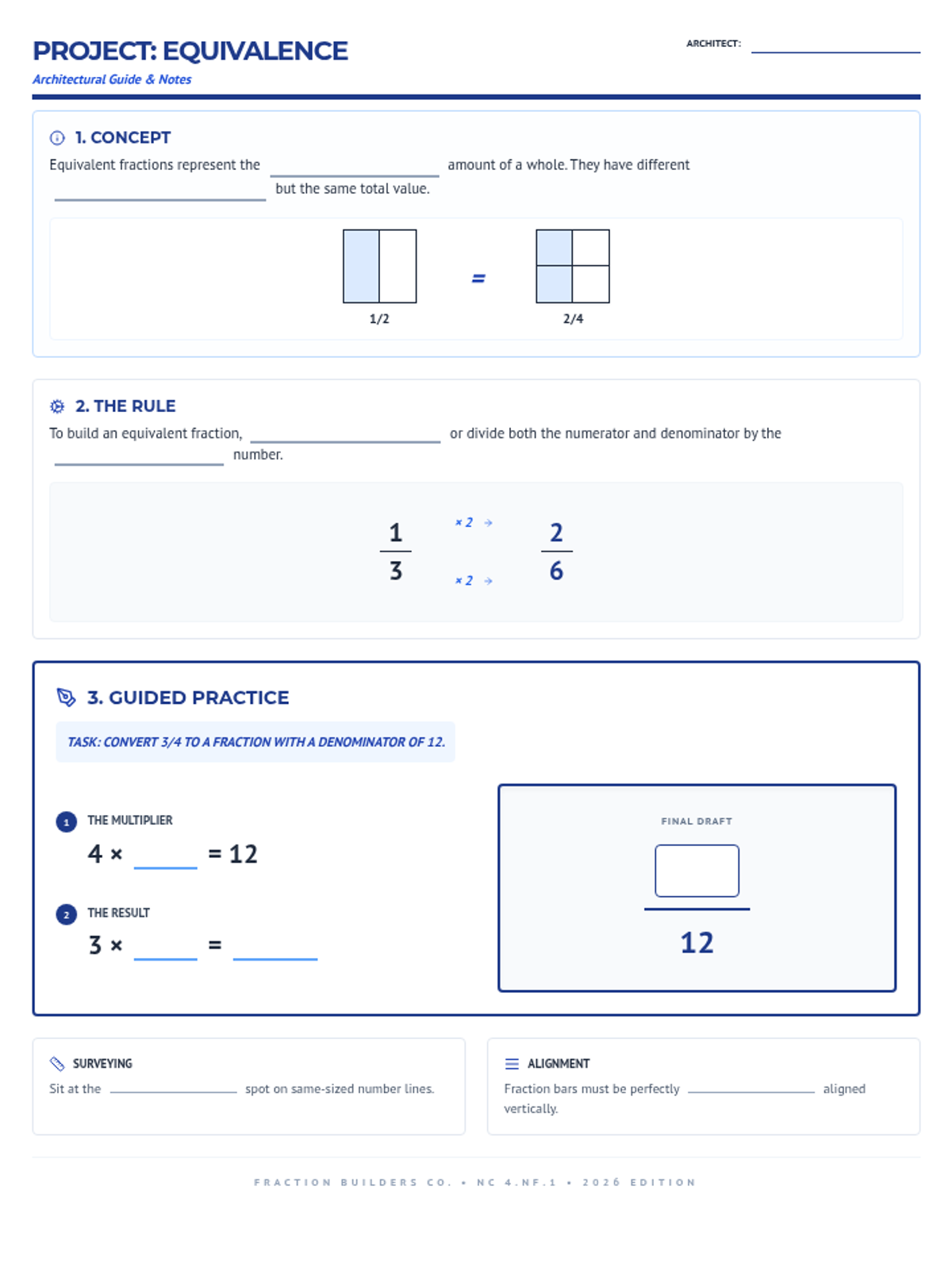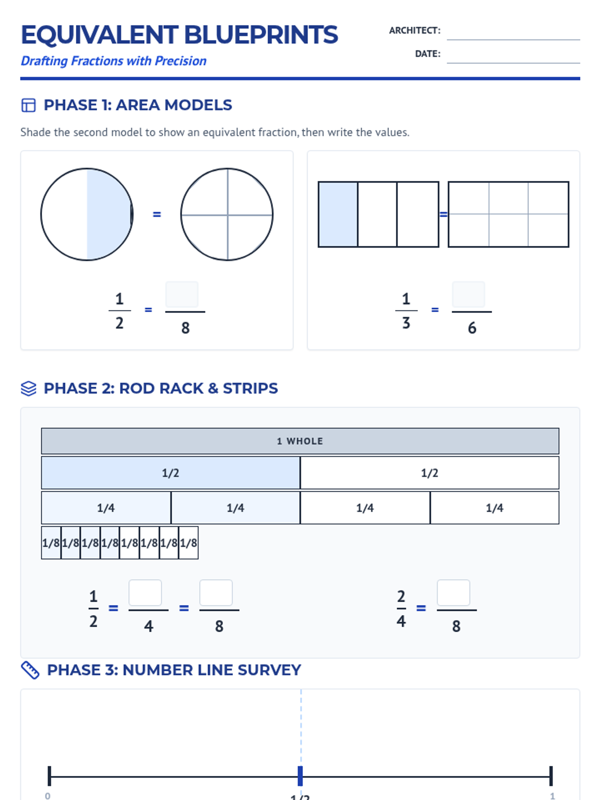 A comprehensive lesson on equivalent fractions using visual models like area models, number lines, and fraction strips to build conceptual understanding before moving to numeric methods.
