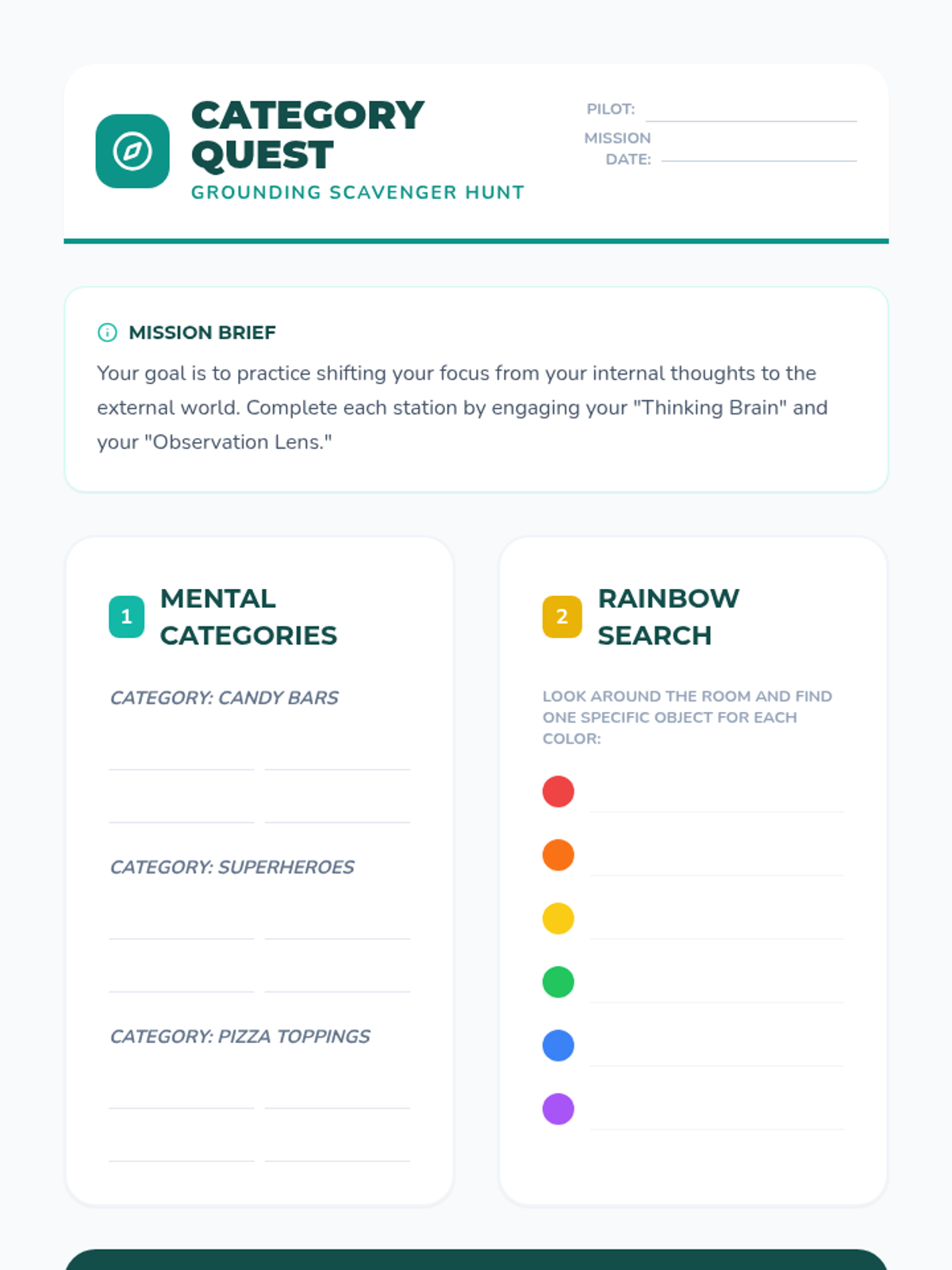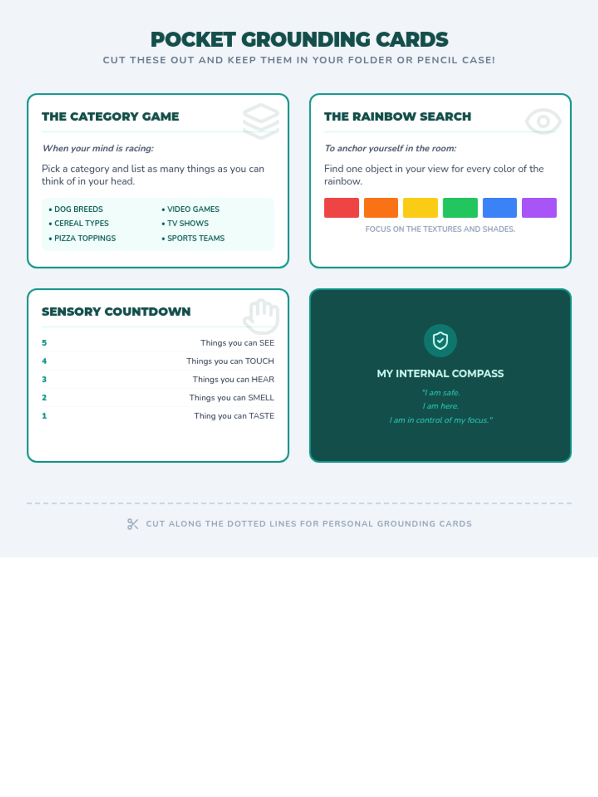 Students practice the 'Categories' and 'Rainbow Game' techniques to engage the thinking brain and shift focus away from internal stressors.