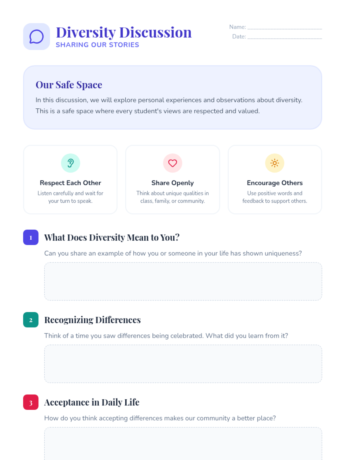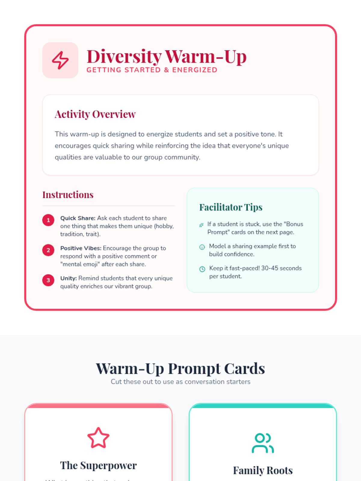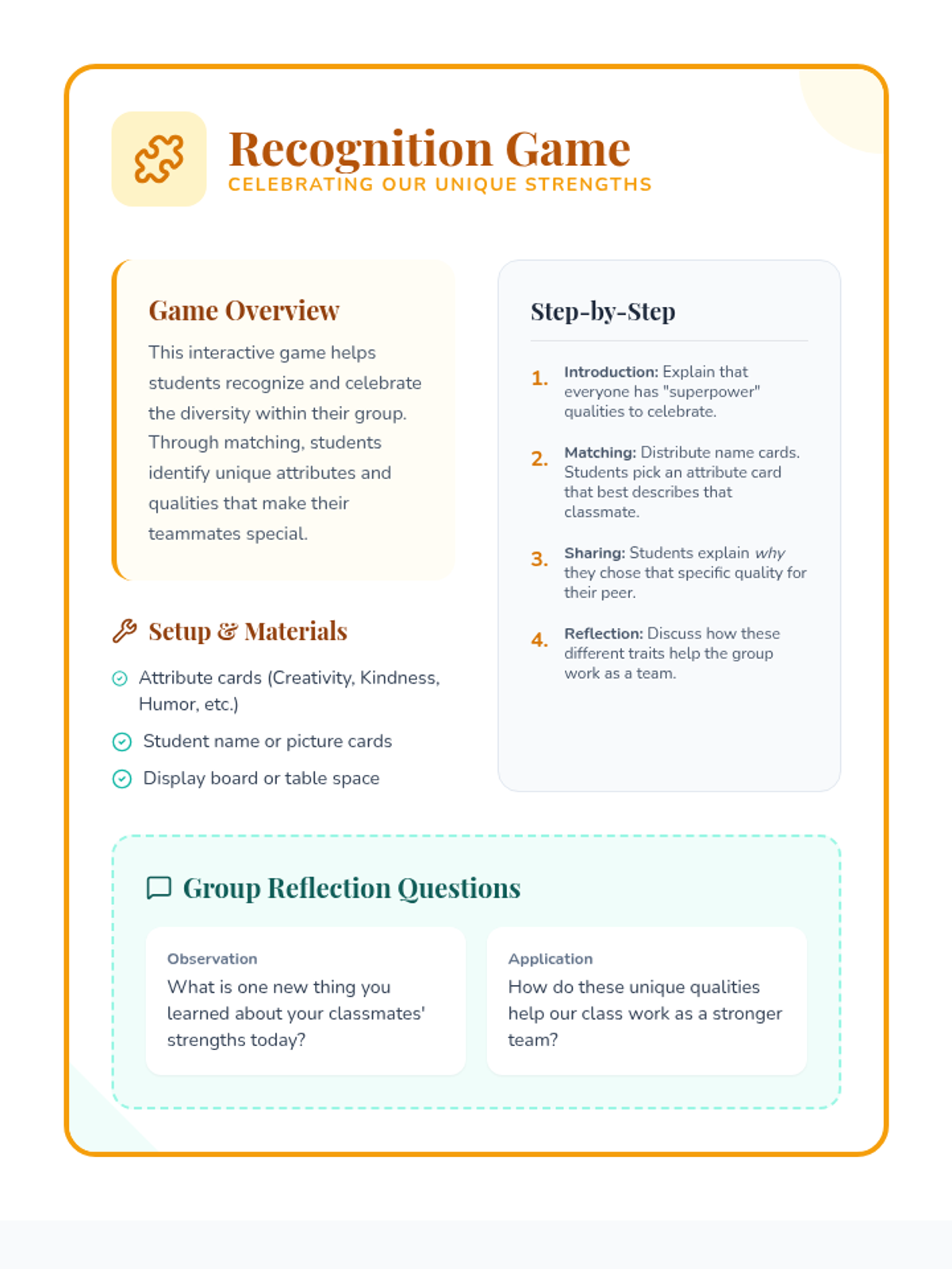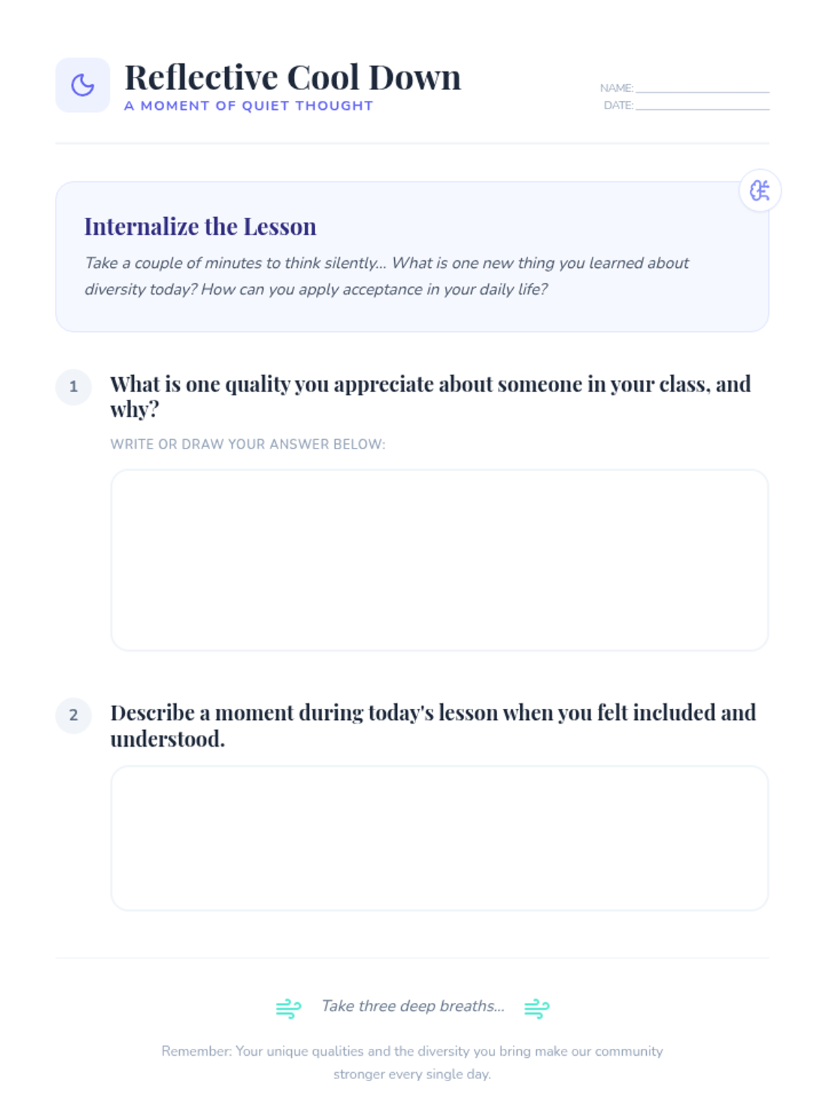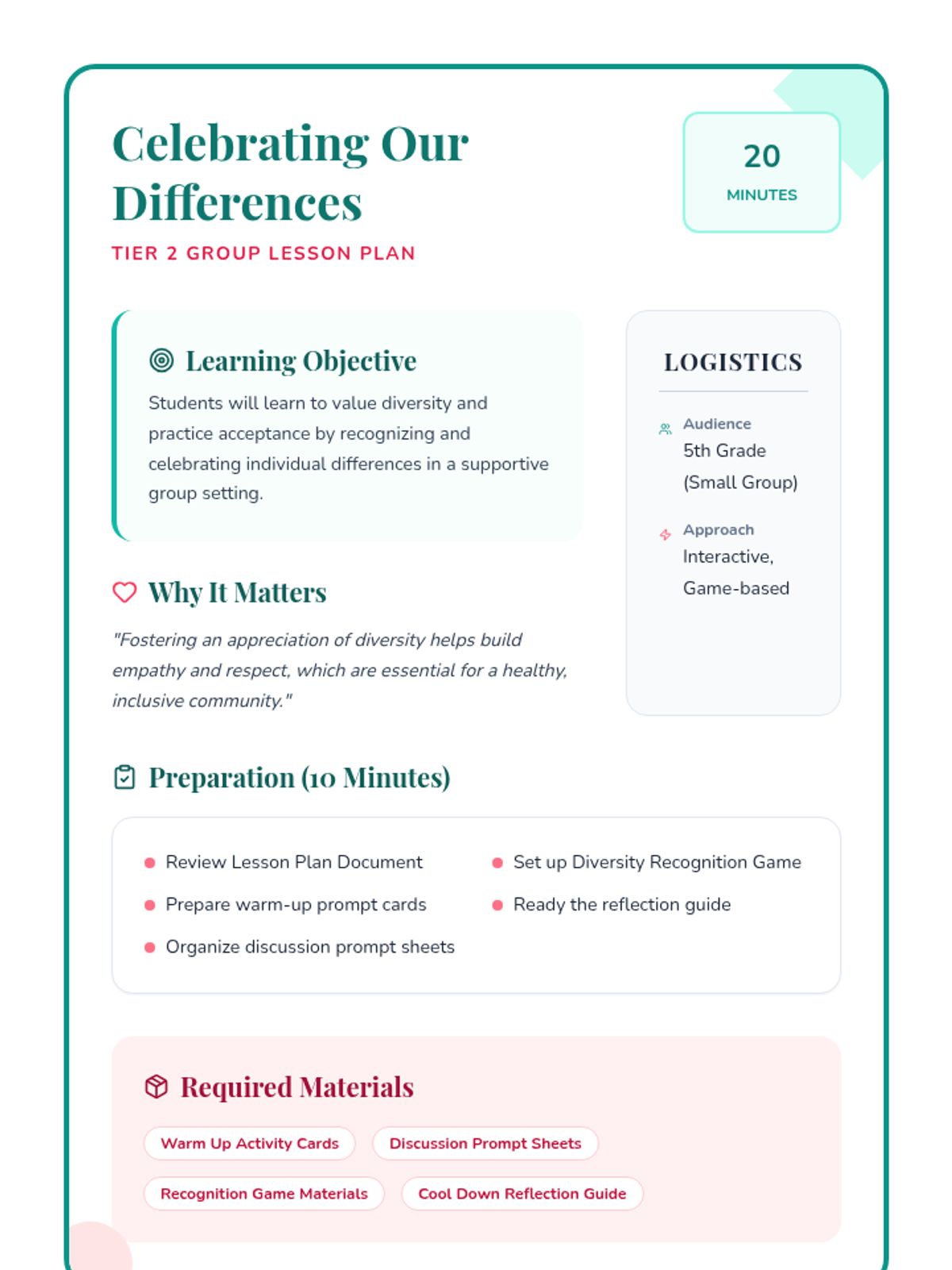 A small group lesson for fifth-grade students to explore acceptance and diversity through interactive discussion, games, and reflection.