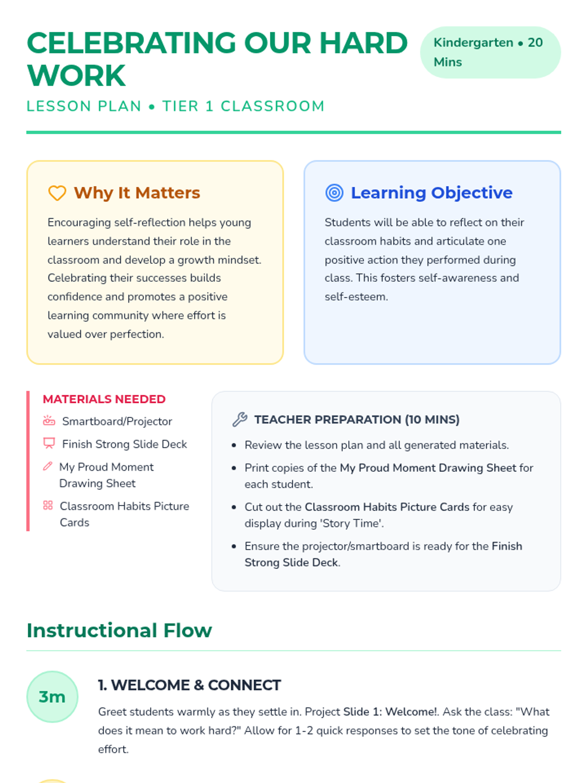 A 20-minute Kindergarten lesson that helps students reflect on their positive classroom habits and celebrate individual achievements through storytelling, discussion, and drawing.