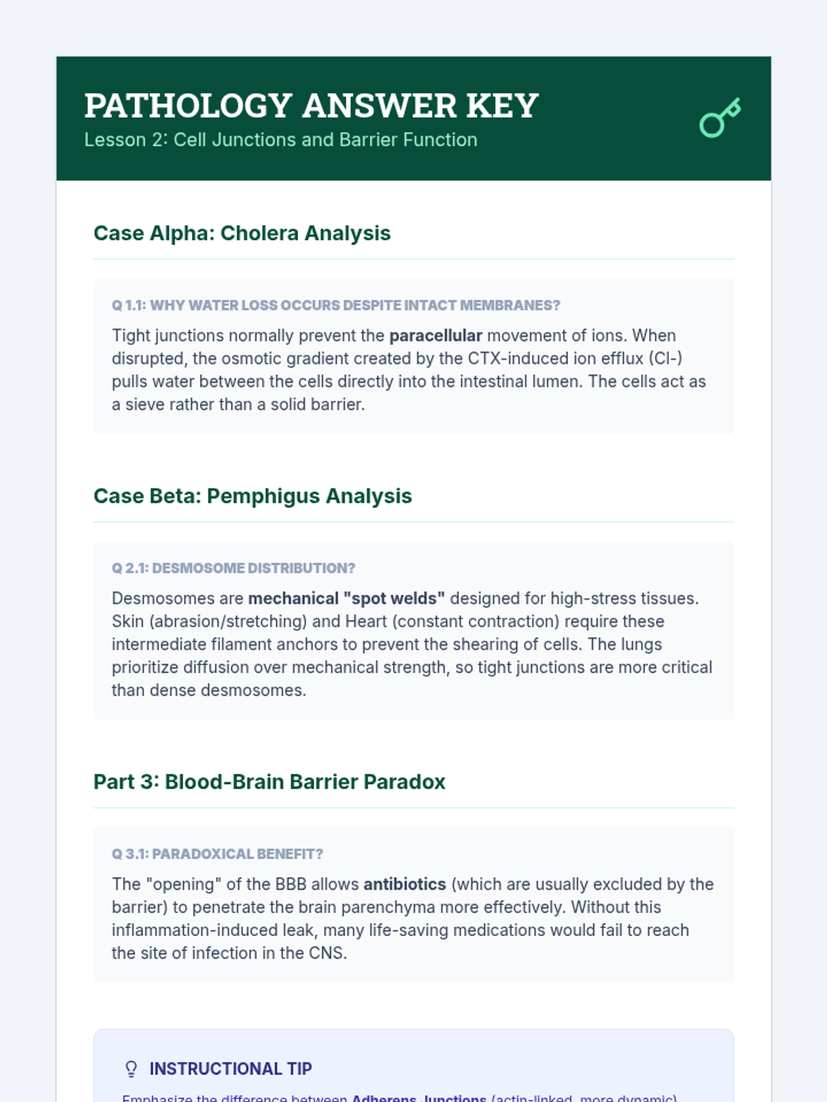An investigation into the specialized protein complexes that hold cells together and create biological barriers. Students analyze how failures in tight junctions and desmosomes lead to diseases like cholera or skin blistering disorders.