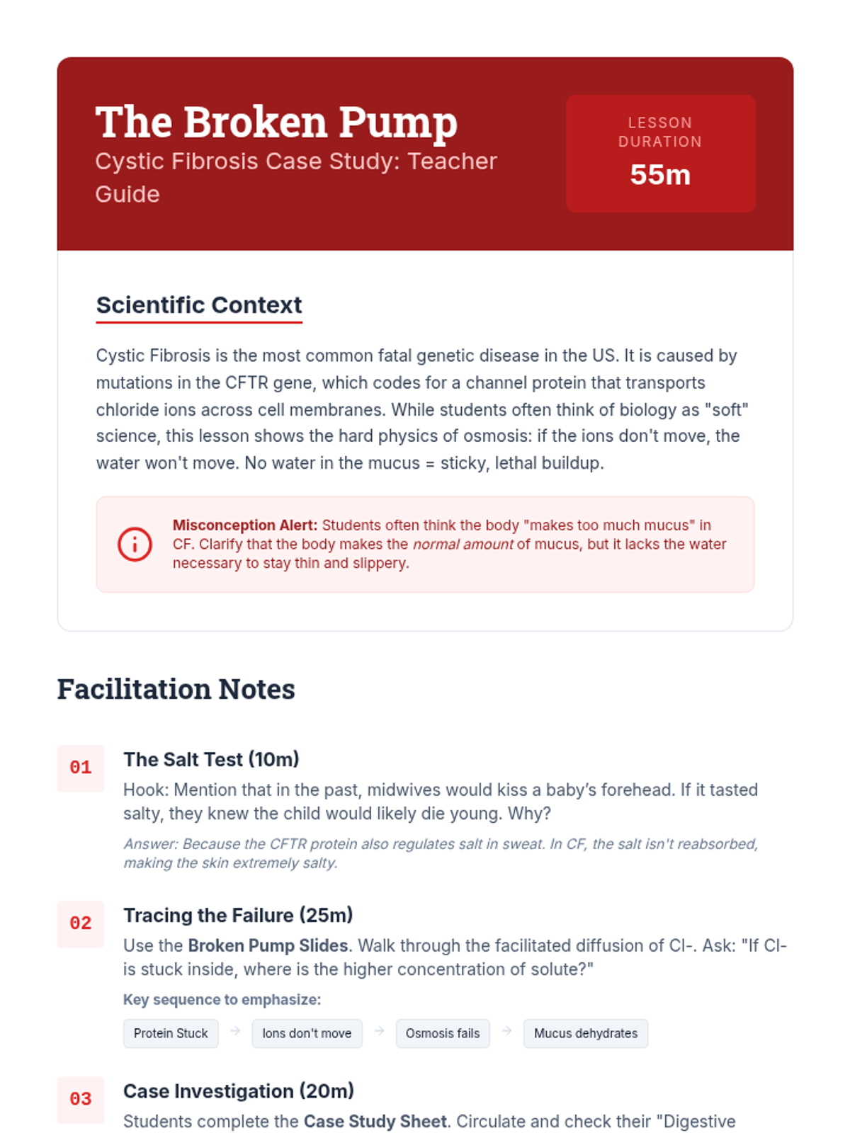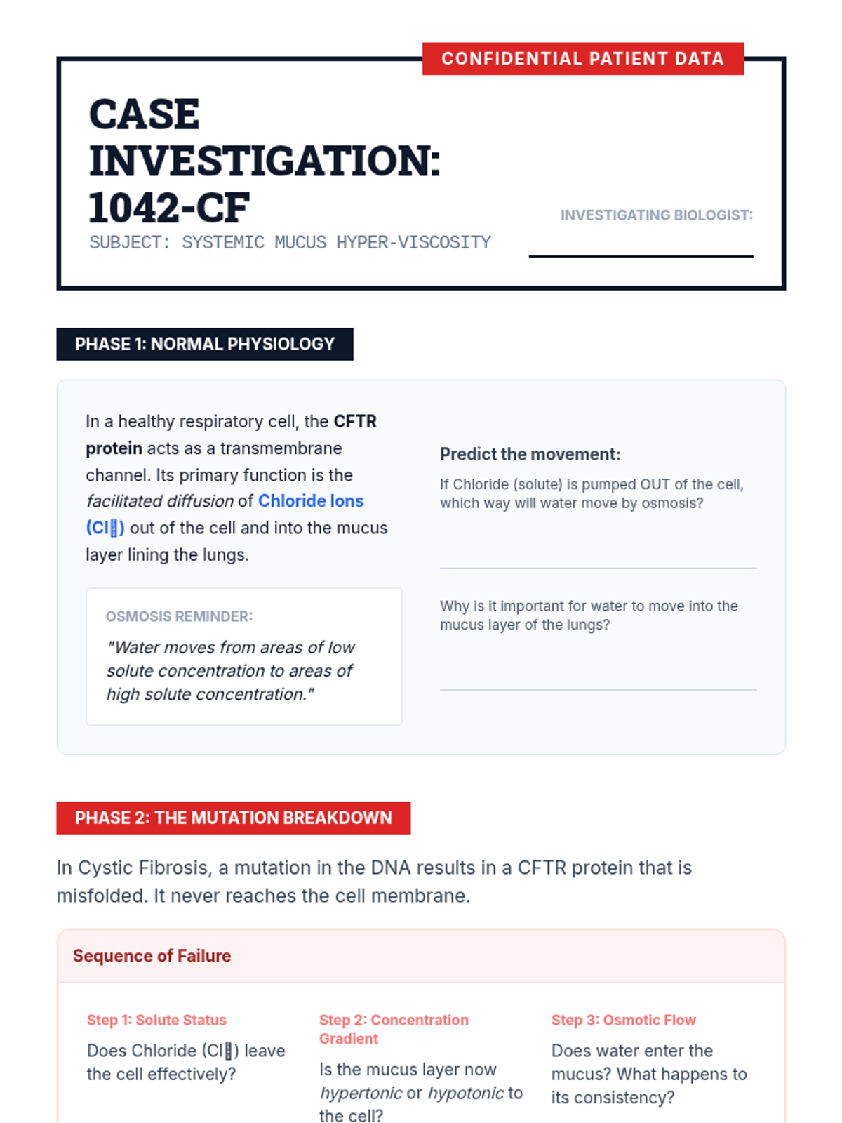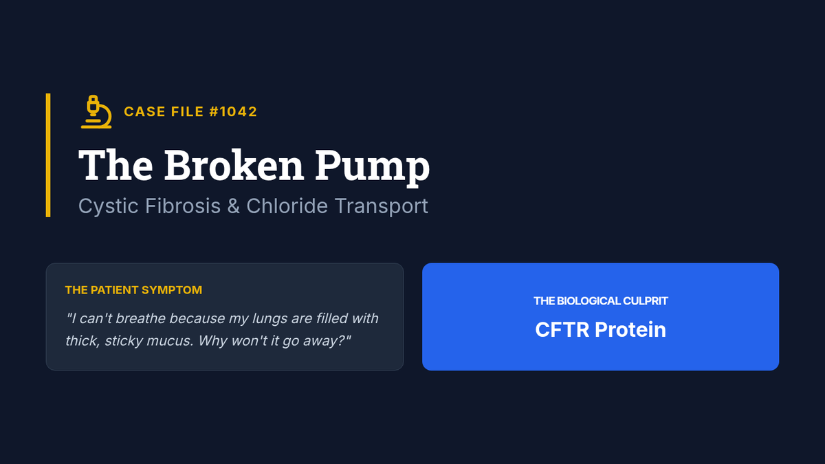 An investigation into Cystic Fibrosis, focusing on how a single malfunctioning protein channel (CFTR) disrupts chloride transport and osmosis, leading to systemic issues.
