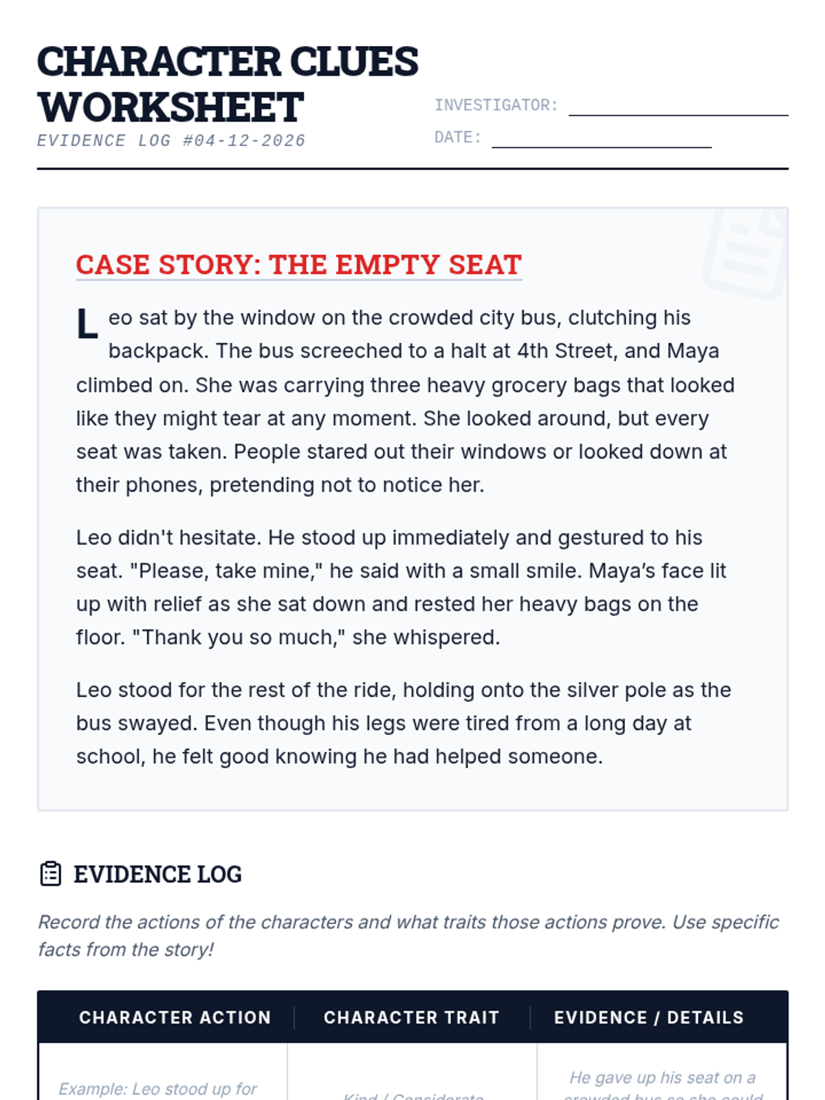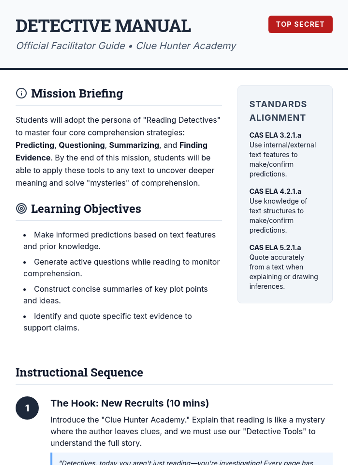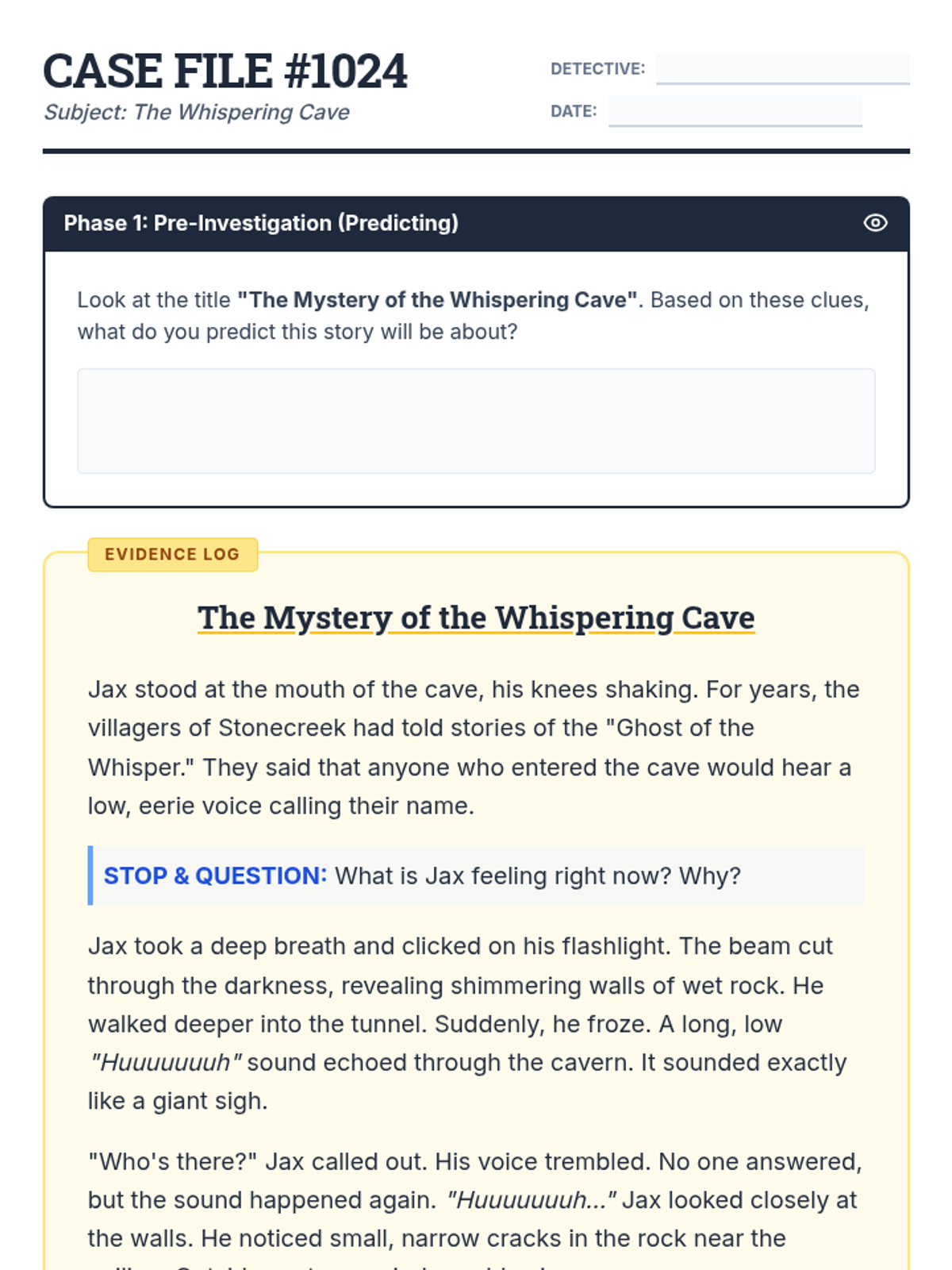 A lesson focused on making complex inferences supported by multiple pieces of textual evidence. Students act as 'Inference Investigators' to decode short fictional passages and build strong, evidence-backed conclusions.