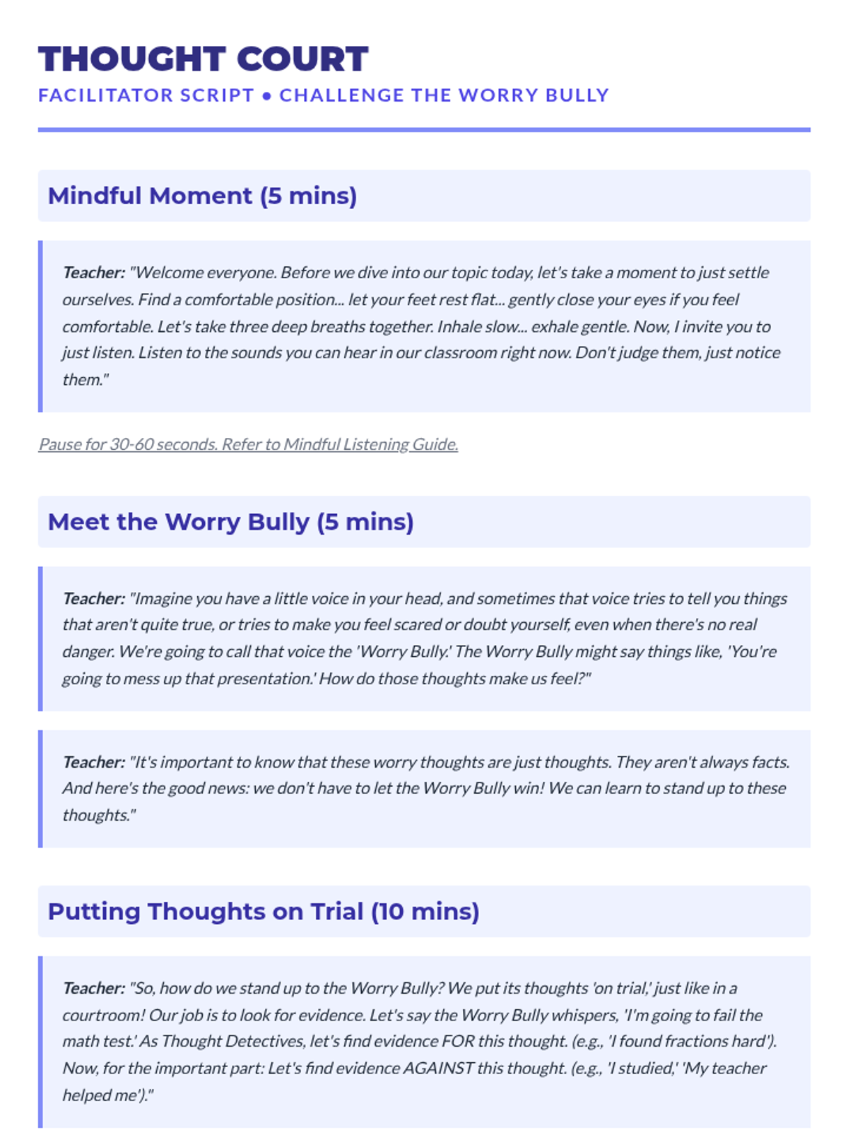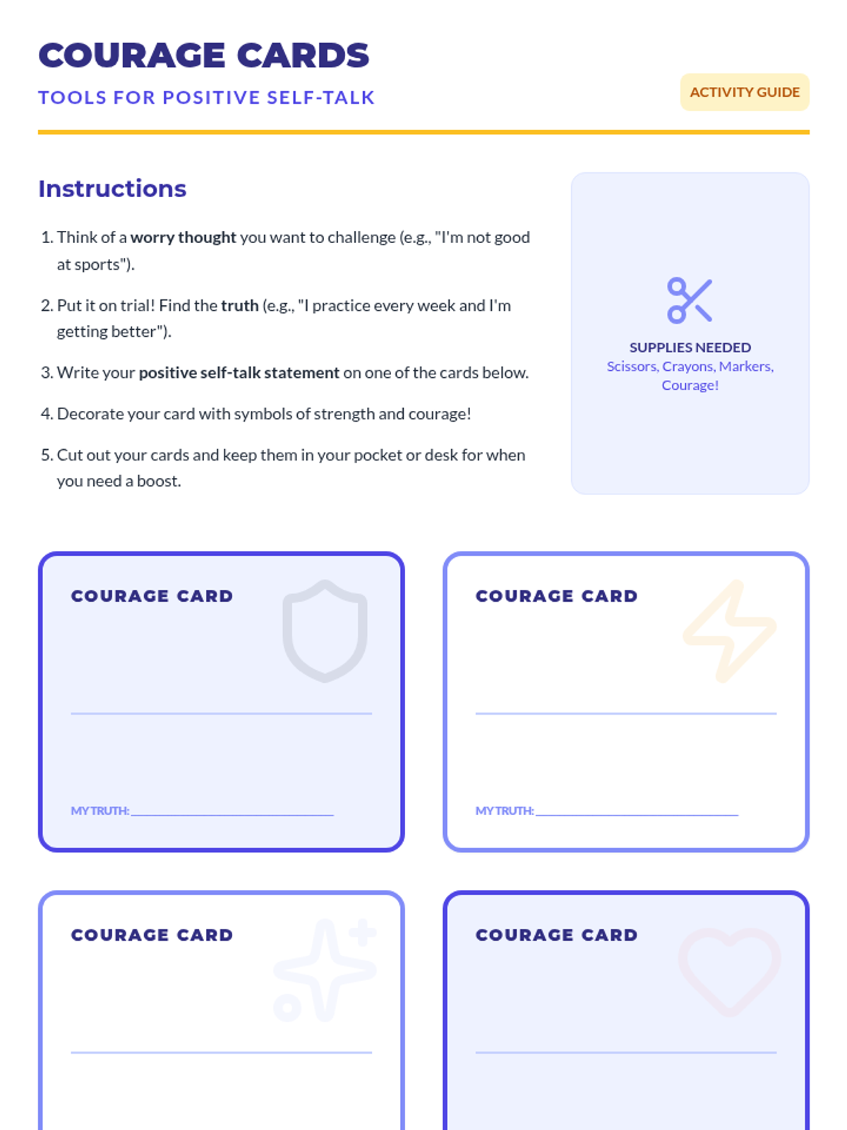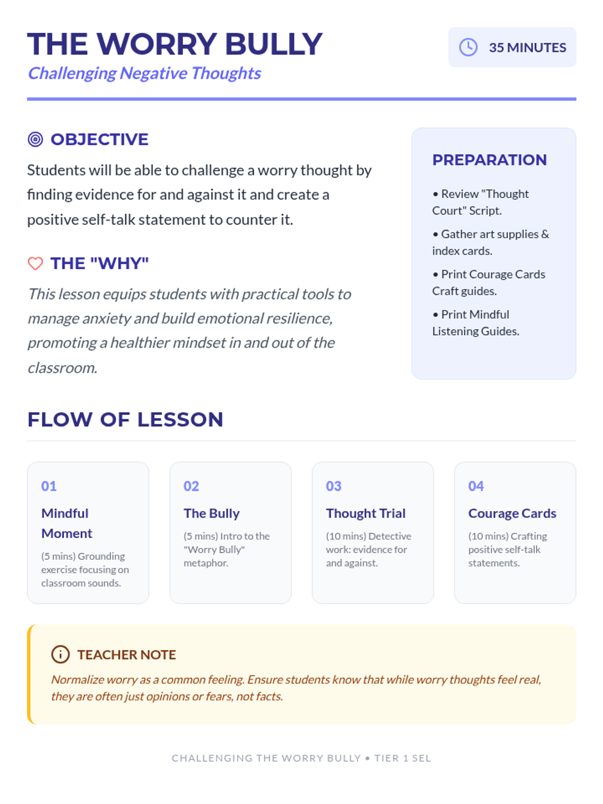 Equips students with practical tools to manage anxiety and build emotional resilience by challenging worry thoughts and creating positive self-talk.