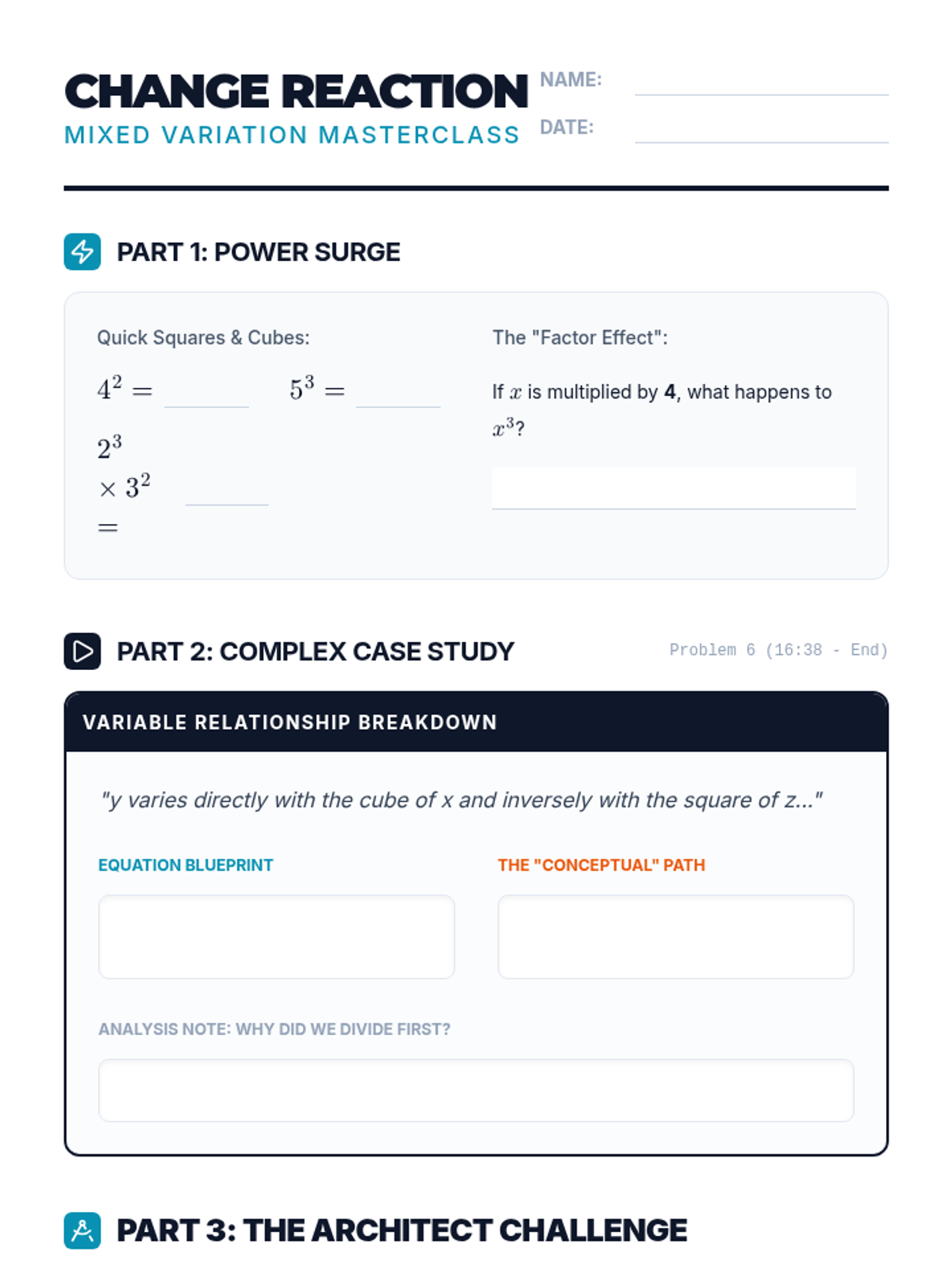 Students will master complex mixed variation problems through algebraic and conceptual methods, culminating in a peer-to-peer 'Create Your Own Problem' challenge.