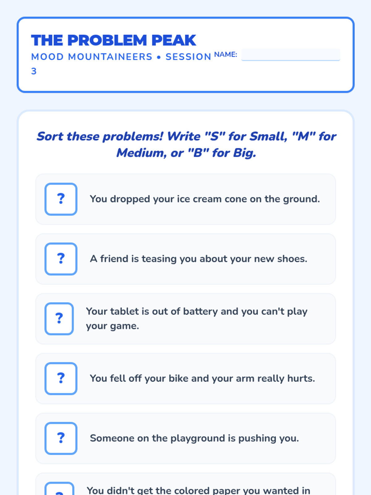An introductory session focusing on identifying basic emotions and understanding that all feelings are okay.