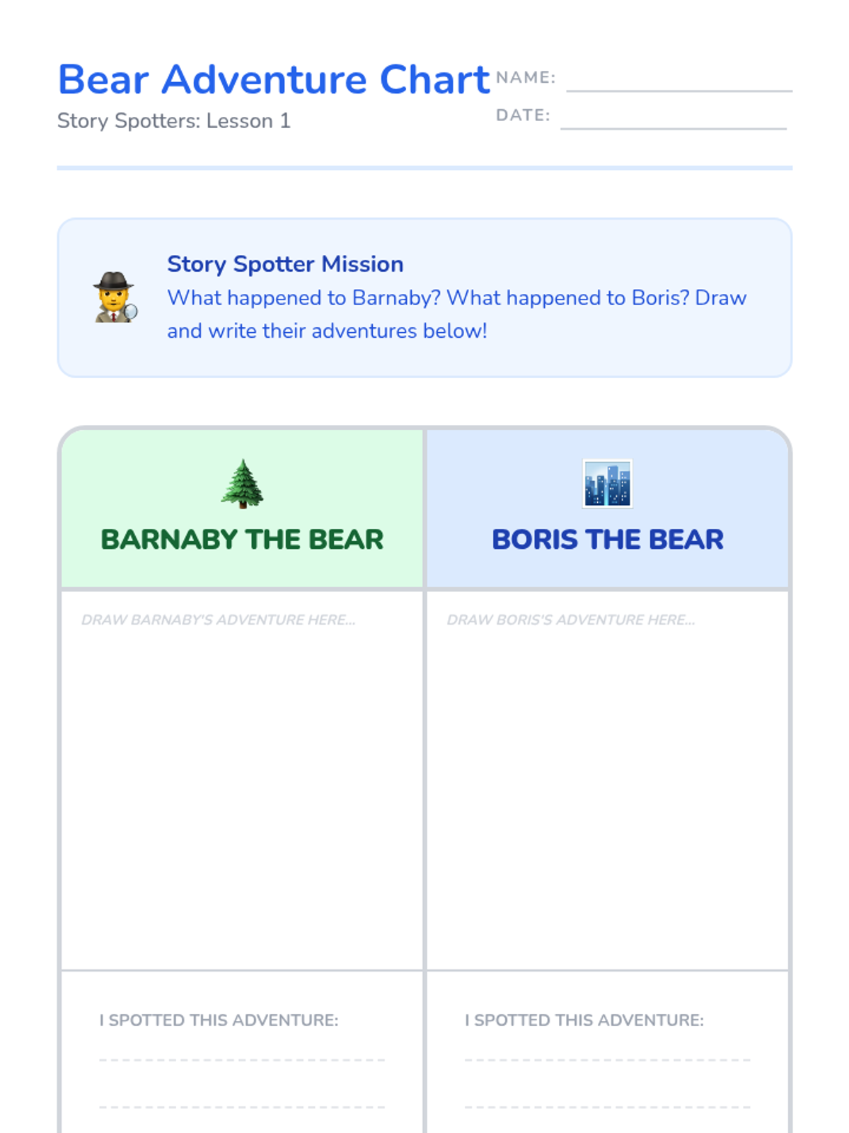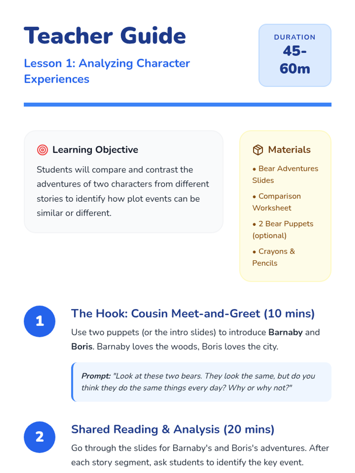 Students compare the adventures of two different bears to identify similarities and differences in plot events and character actions.