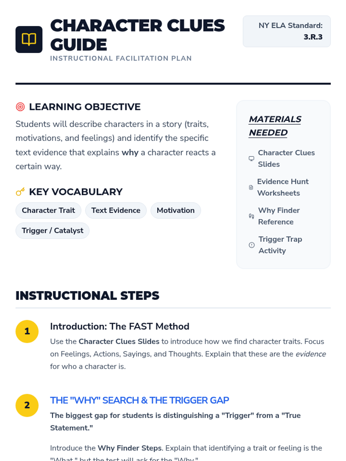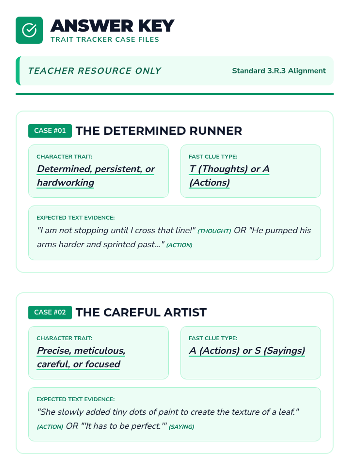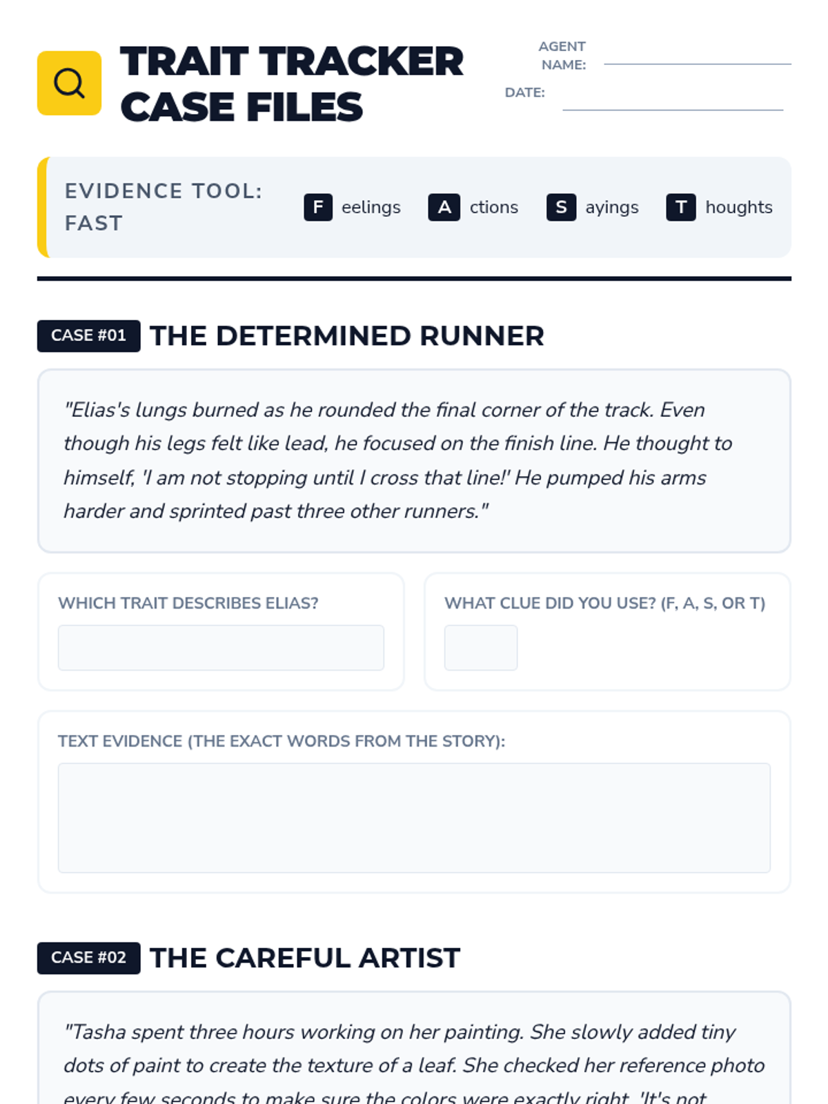 Students will learn to identify character traits by analyzing a character's feelings, actions, sayings, and thoughts (FAST). This lesson focuses on using specific text evidence to support descriptions of characters in literary texts.