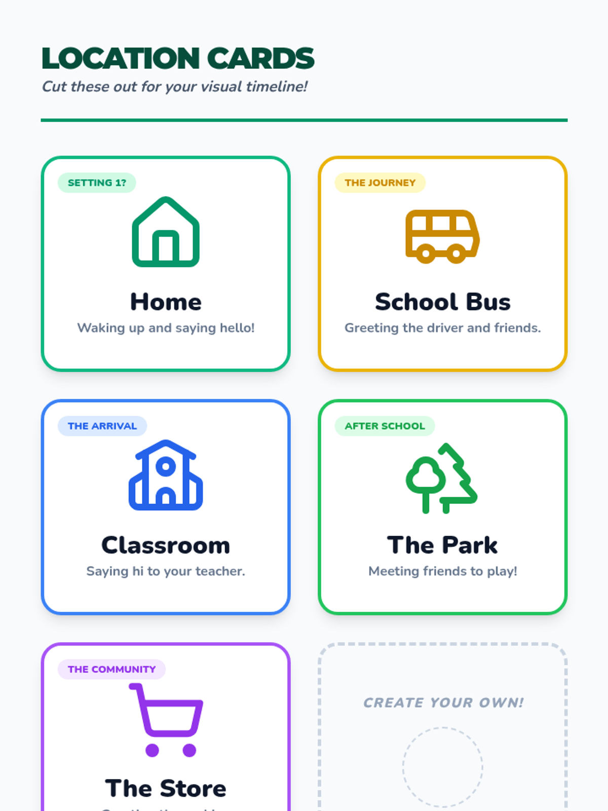 A collection of visual social stories, checklists, and activities designed to help autistic students navigate classroom expectations like listening, waiting, working, and taking breaks.