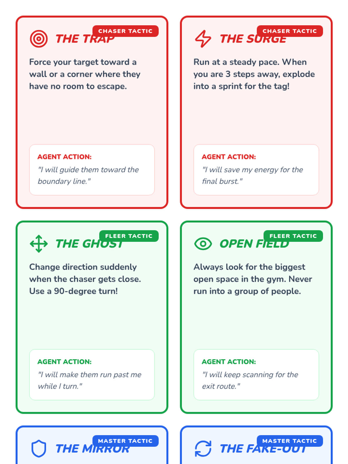 Students apply locomotor skills in chasing and fleeing scenarios, analyzing which movements are most effective for dodging or catching.