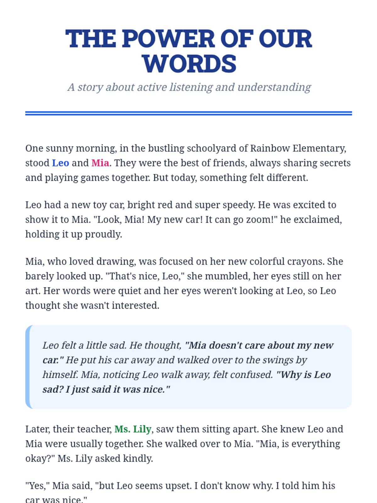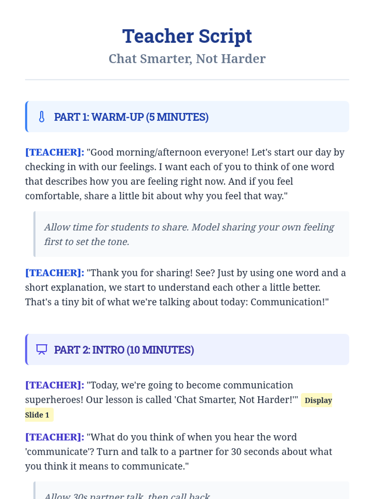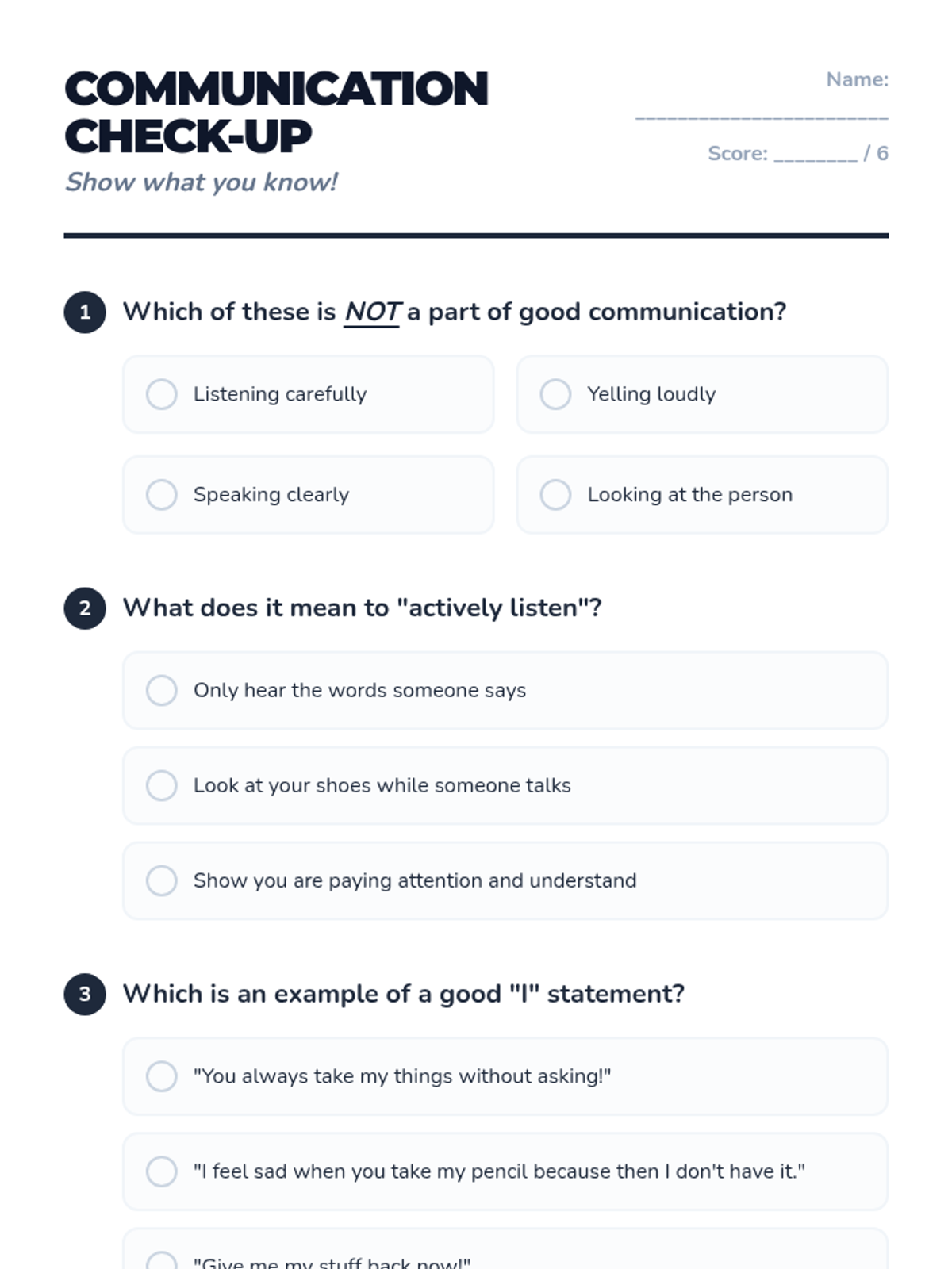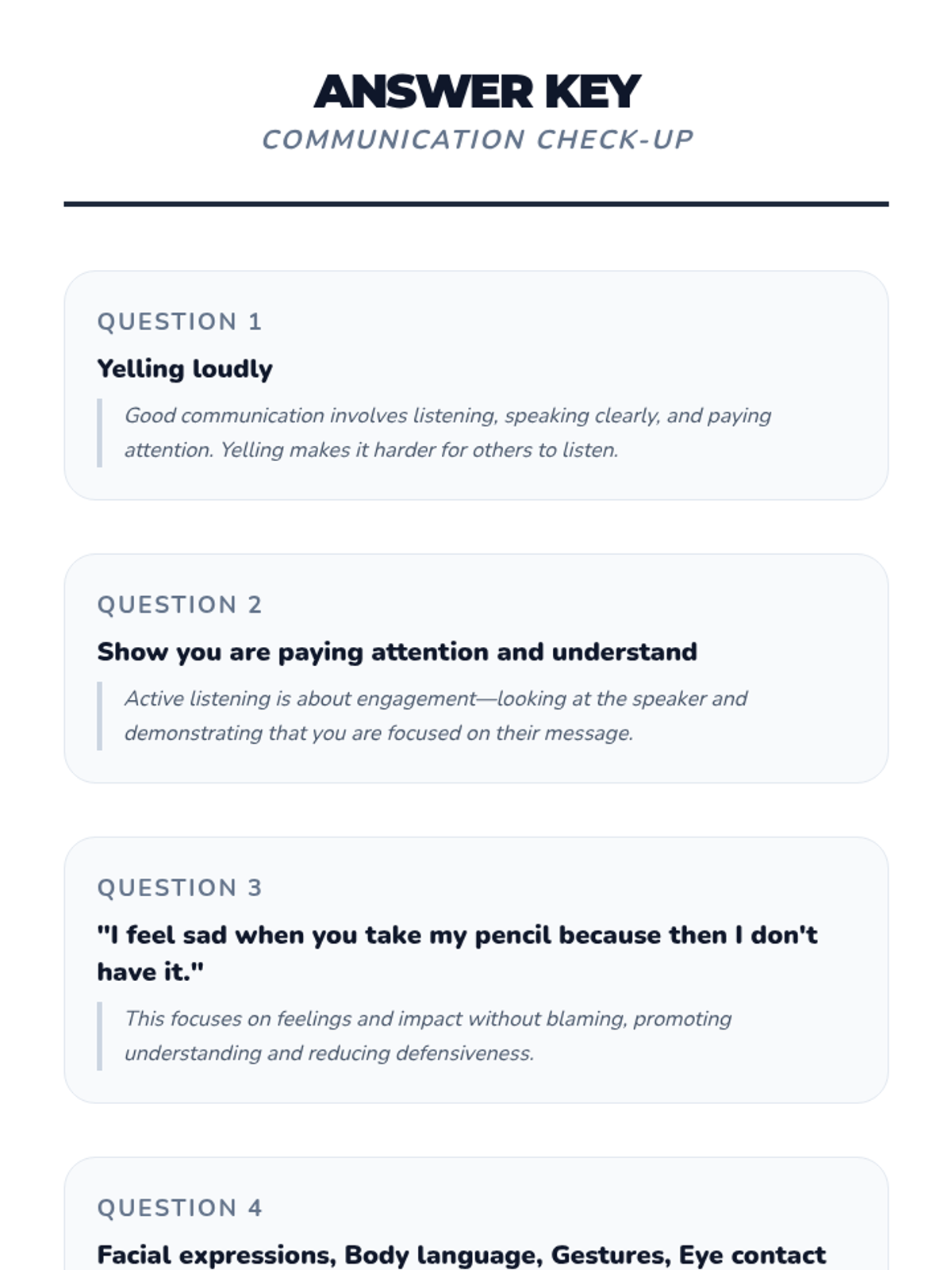 This lesson introduces Primary 3 & 4 students to essential communication skills, including active listening, clear expression, and understanding non-verbal cues. Students will learn how effective communication helps them build better friendships, solve problems, and express their feelings.