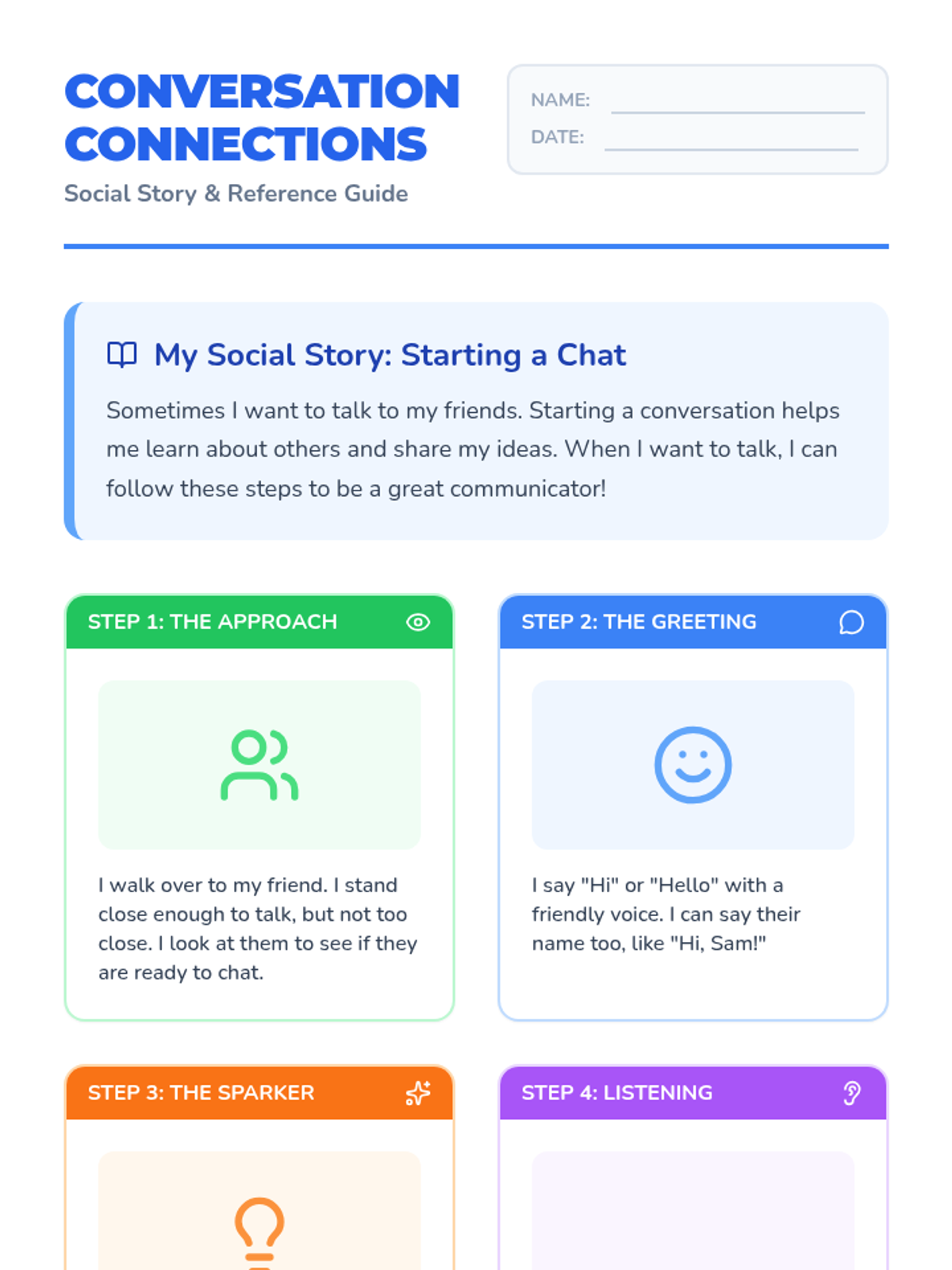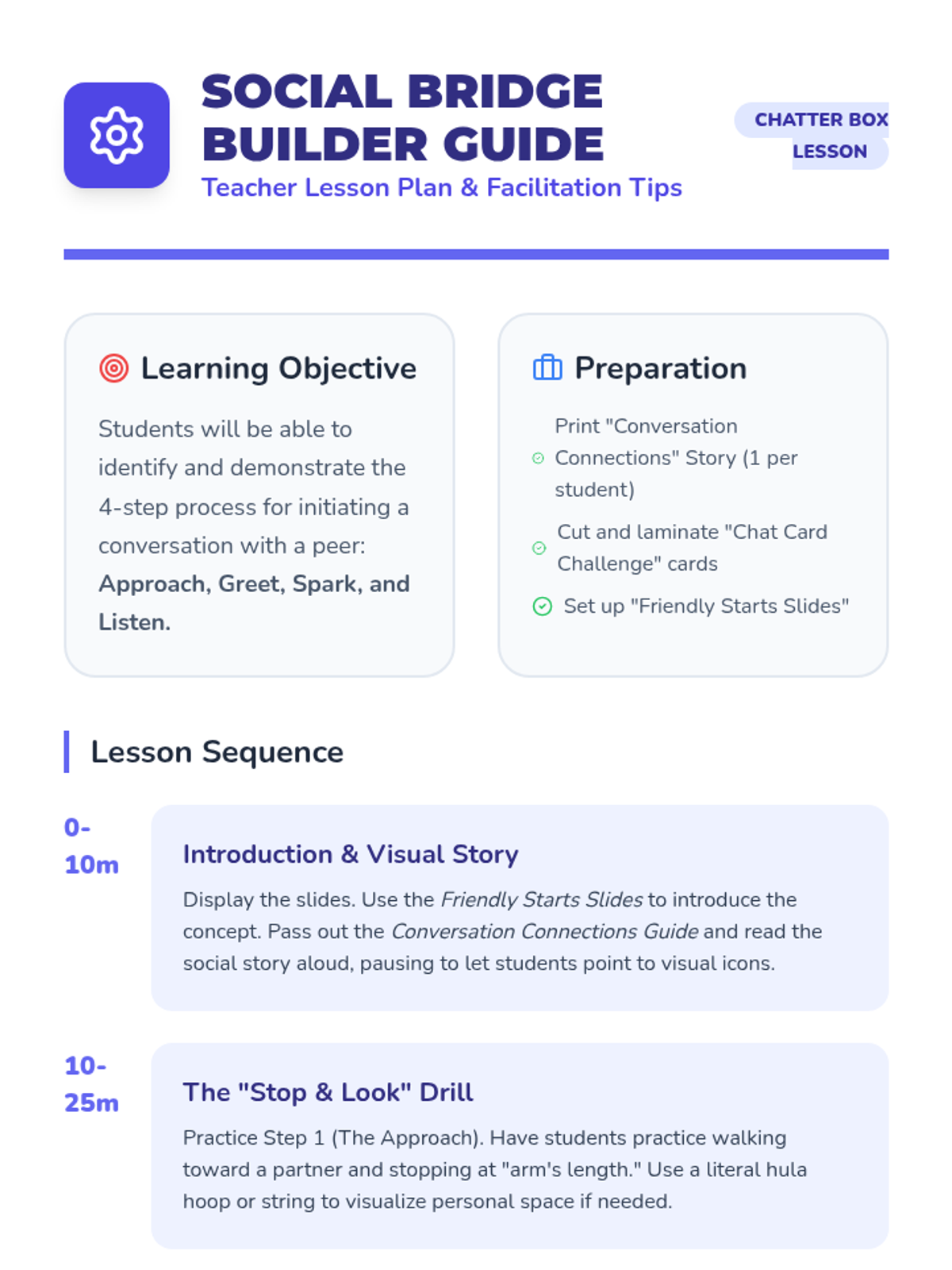 A social skills lesson designed for 2nd grade students with ASD, focusing on the mechanics and confidence needed to start conversations with peers using visual supports and social stories.