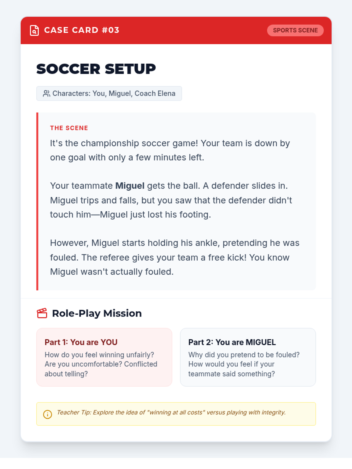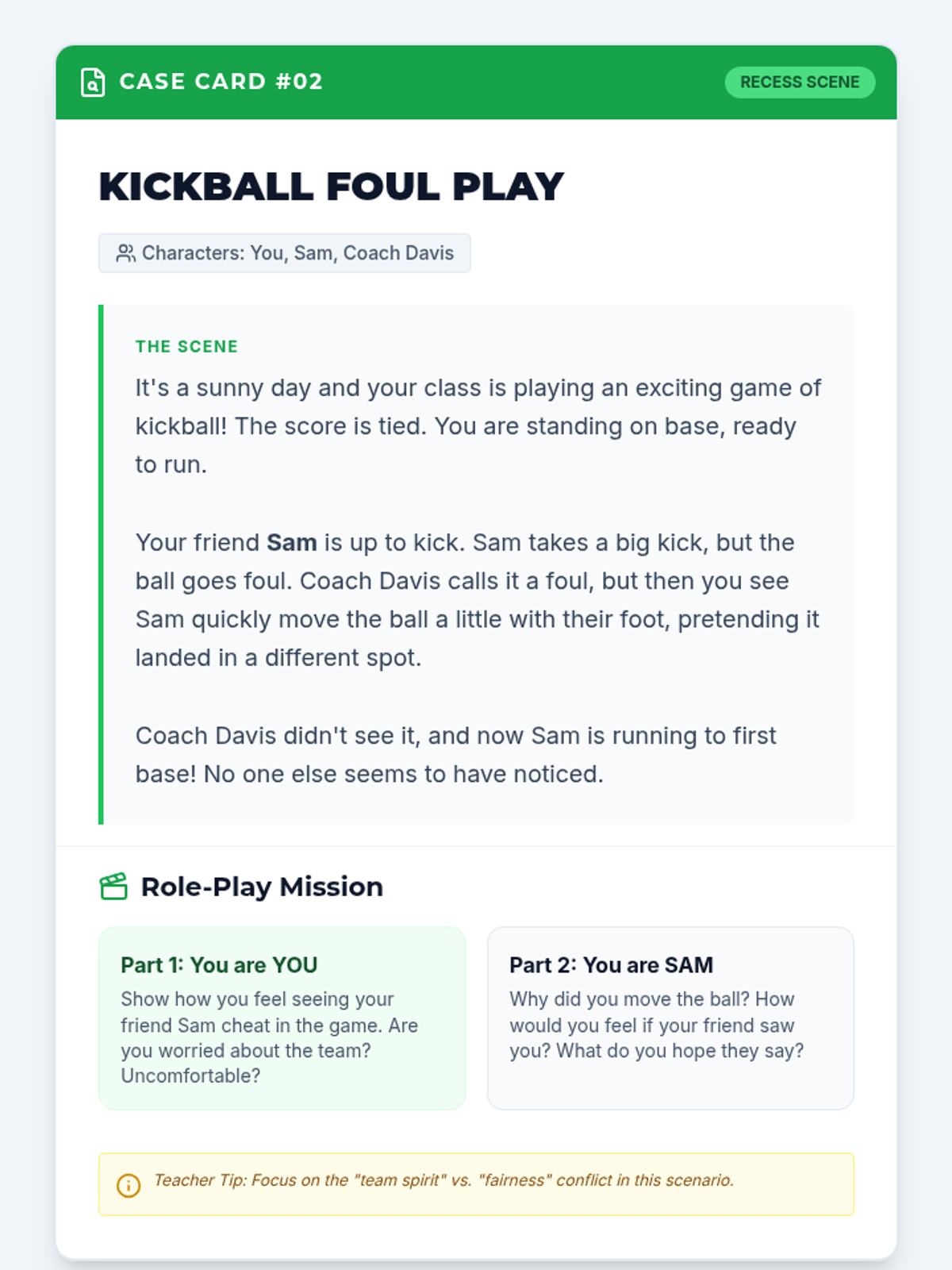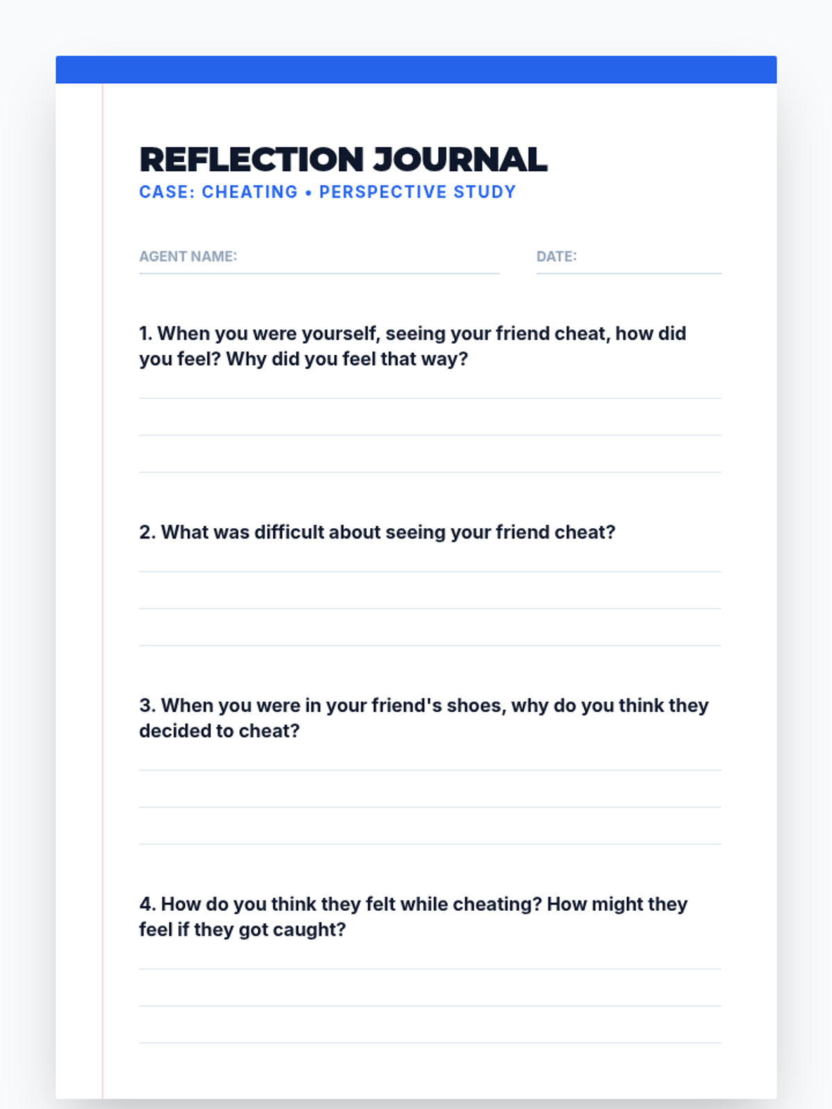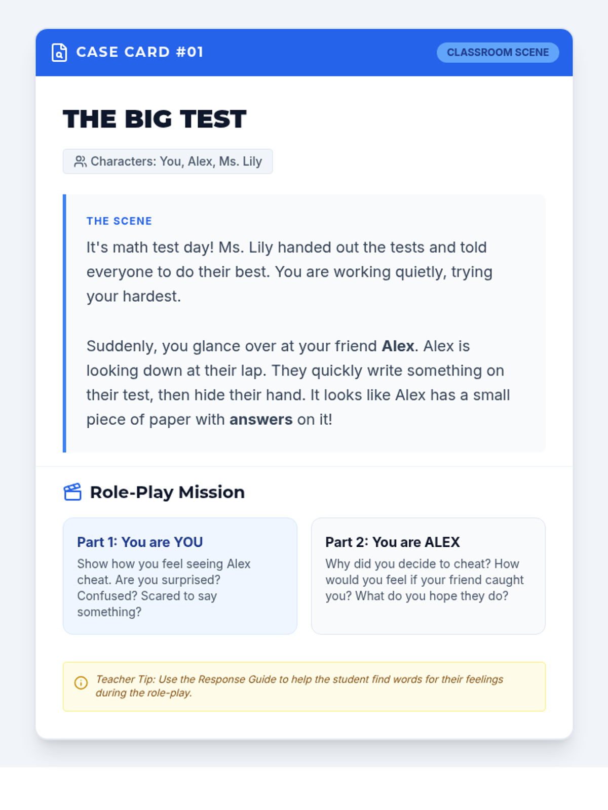 An individual Tier 3 lesson for 3rd graders to explore perspective-taking and ethical decision-making through role-playing cheating scenarios.